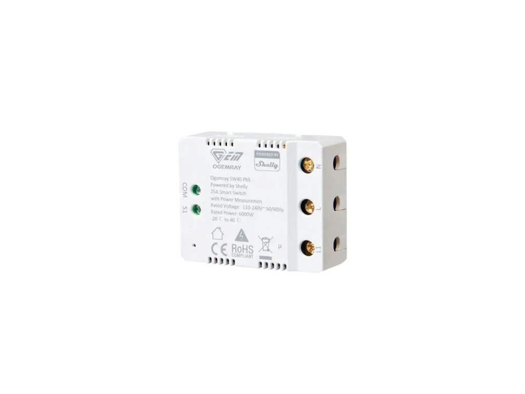 Releu inteligent Ogemray 25A alimentat de Shelly (WiFi, Bluetooth)