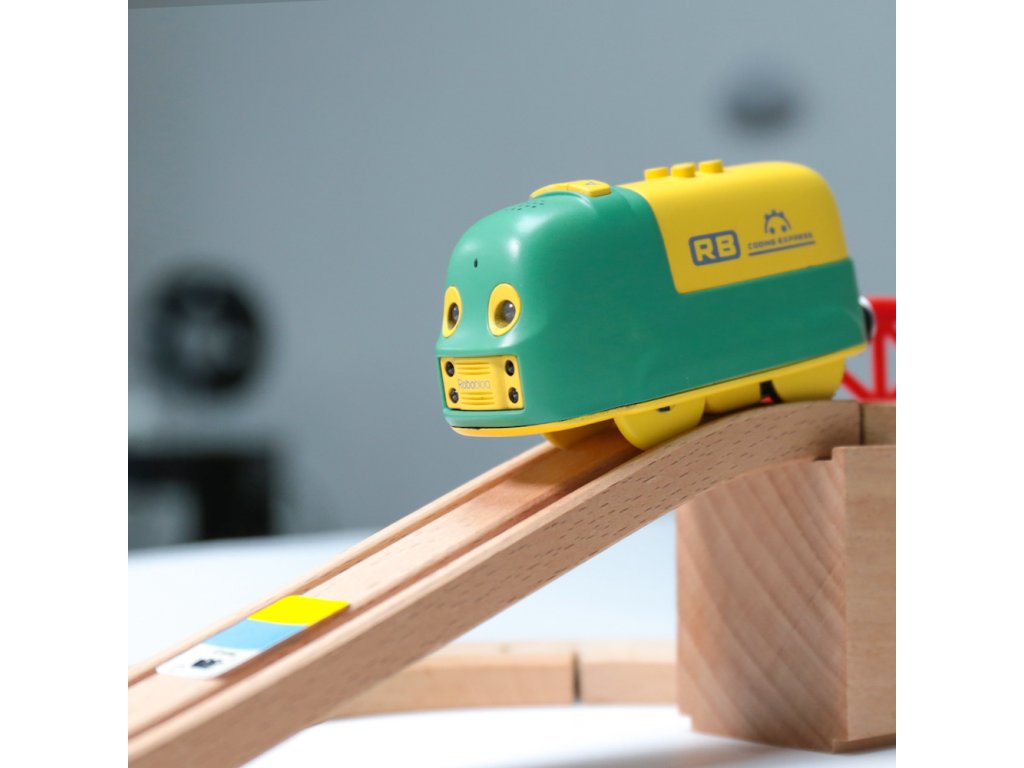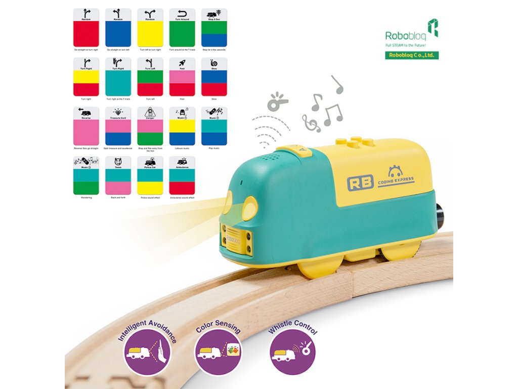 Coding Express este echipat cu un senzor de sunet inteligent, datorită căruia poate accelera automat atunci când fluieră. Joacă rolul de dirijor și pregătește-ți trenul pentru plecare fluierând. Copiii iubesc aceste caracteristici și se vor îndrăgosti rapid de învățarea cu trenul. Cu ajutorul unui tren inteligent programabil și a autocolantelor de programare, copiii învață noi abilități fără să-și dea seama pe deplin. Ei au senzația că doar se joacă și că dobândesc, fără să știe, o serie întreagă de cunoștințe noi. Robobloq Coding Express îi implică pe copii și îi învață multe abilități noi. Această jucărie modernă impresionează nu numai prin procesare și durabilitate, ci și prin aspectul său atractiv și designul frumos. Coding express dezvoltă talentul copiilor într-o serie de domenii diferite - gândirea într-o limbă străină, învățarea să recunoască culorile, îmbunătățirea abilităților motorii, gândirea logică atunci când planificați un traseu. Jocul dezvoltă în mod cuprinzător imaginația și creativitatea copiilor și îi învață pe preșcolari independența în rezolvarea problemelor. Și toate acestea într-un mod non-violent, ceea ce este foarte distractiv pentru ei.