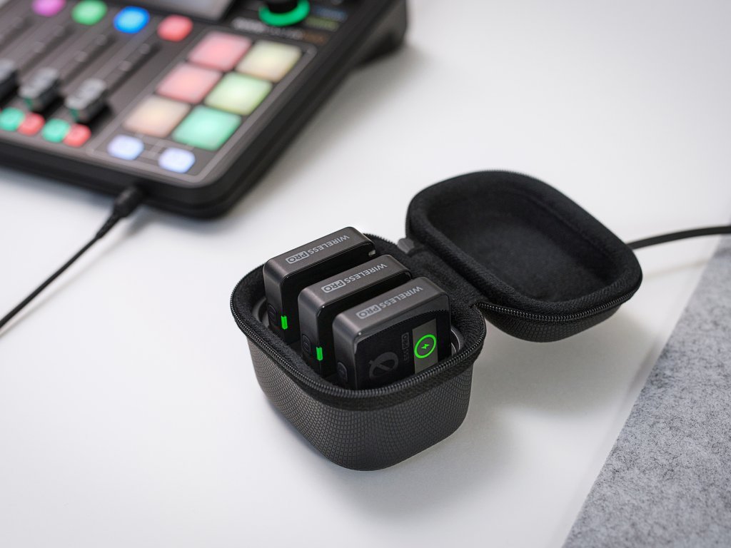 Kitul Wireless PRO vine cu tot ce ai nevoie pentru a înregistra sunet wireless de calitate broadcast: două transmițătoare, un receptor, o carcasă de încărcare inteligentă, o pereche de microfoane lavalier, paravane, cleme magnetice și toate cablurile necesare pentru conectarea la dispozitive.