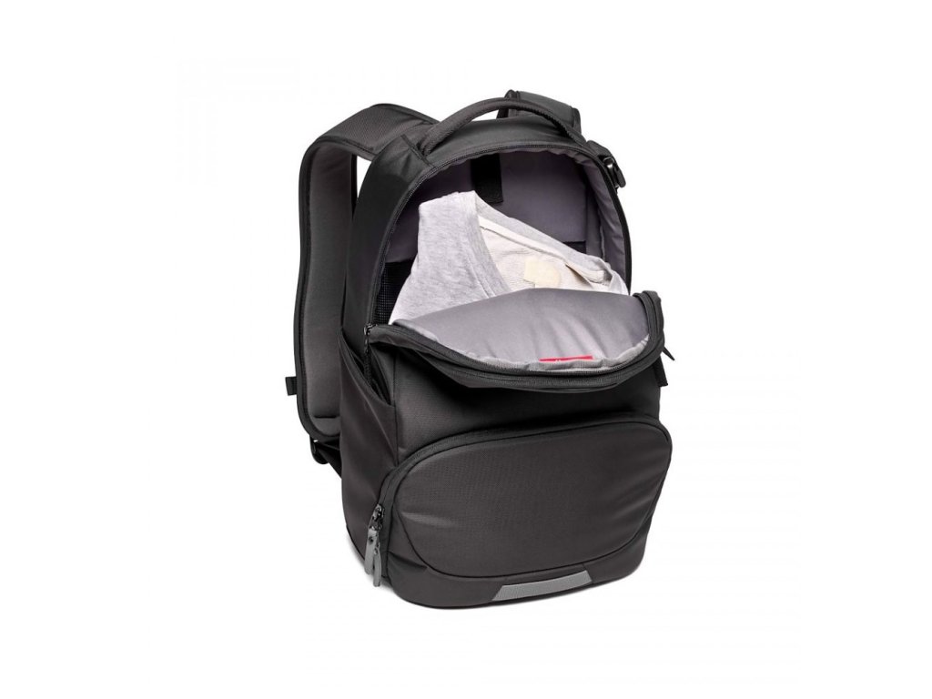 Compartimentul căptușit pentru cameră are noul Manfrotto Sistem de protecție M-Guard™ care este realizat din spumă EVA specială de înaltă densitate care oferă răspuns excepțional de absorbție a șocurilor cu un profil super subțire. Modelele de pliere personalizabile permit o versatilitate maximă pentru a vă proteja complet echipamentul camerei, maximizând în același timp utilizarea spațiului. Compartimentul superior are, de asemenea, suficient spațiu pentru obiectele personale, inclusiv un compartiment pentru laptop care poate încăpea până la caiet de 14 inchi.