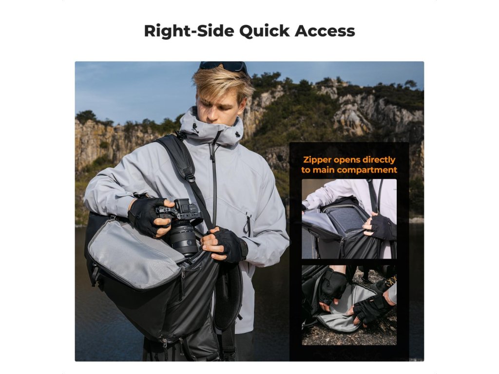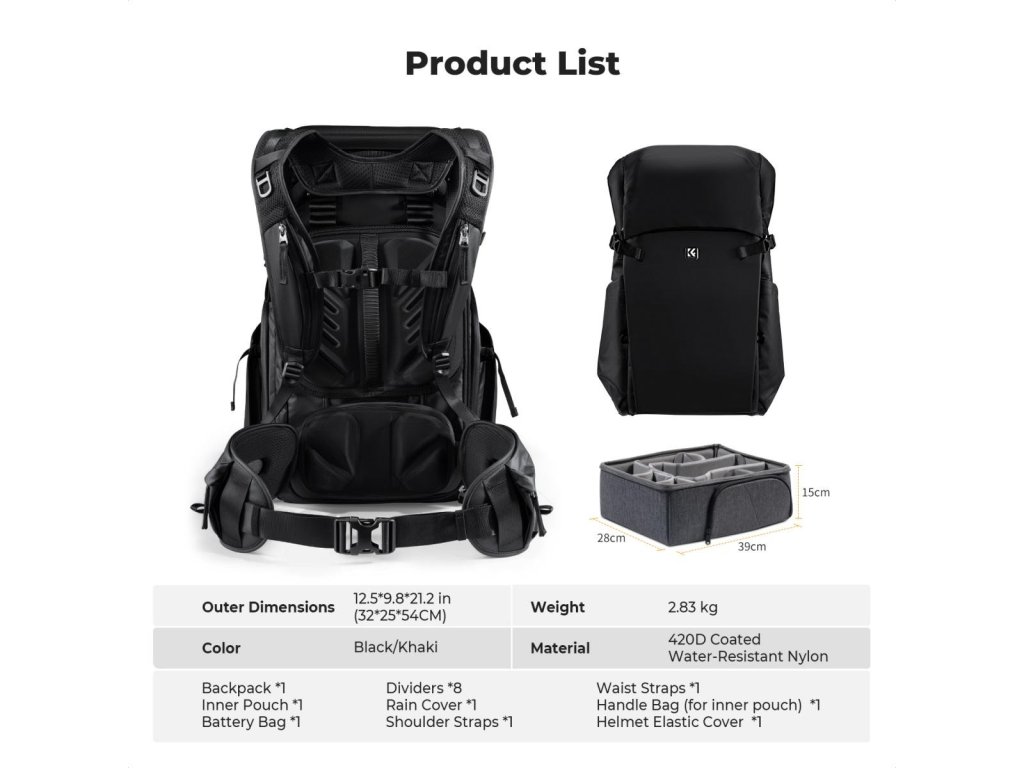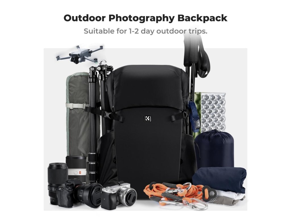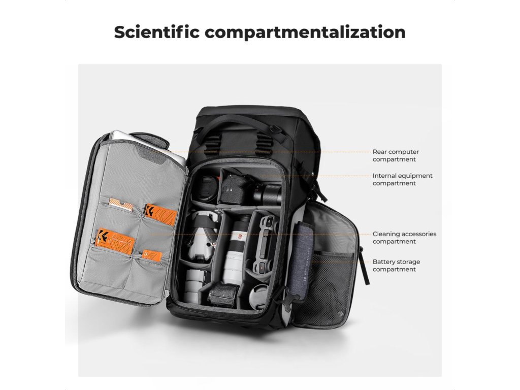 Rucsac foto K&F Concept 30L, rucsac profesional impermeabil DSLR cu inserție personalizabilă detașabilă, bretele reglabile - potrivit pentru laptop de 15", echipament foto, rucsac 30L Star Wander01 negru