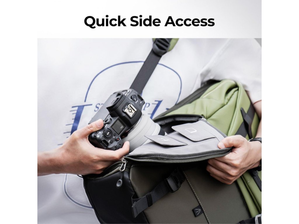 - Conceput pentru fotografi: Buzunare interne speciale concepute pentru depozitarea pieselor de schimb fotografice precum filtre, inele adaptoare etc. Buzunar frontal ascuns pentru depozitarea accesoriilor de zi cu zi. Buzunarele laterale pot ține o sticlă de apă sau o umbrelă.