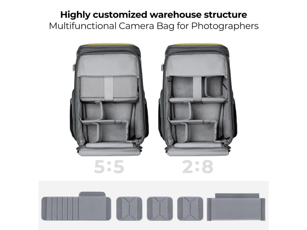 - * ? Design Bin Magic? Acest rucsac foto poate fi realizat în raport de 5:5 și 2:8 apăsând în sus sau în jos pentru diferite nevoi. Costum pentru fotografie în aer liber, fotografie urbană de stradă, portrete în aer liber, fotografie VIOG etc.