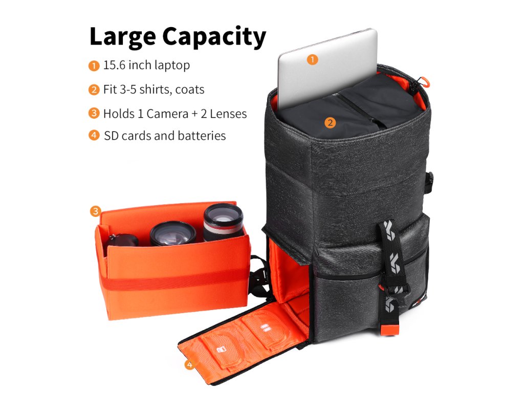 - Extrem de rezistent la apă și sigur: rucsacul pentru cameră este fabricat din nailon 900D rezistent și rezistent la apă, cu o husă de ploaie pentru a vă păstra echipamentul pe deplin protejat.