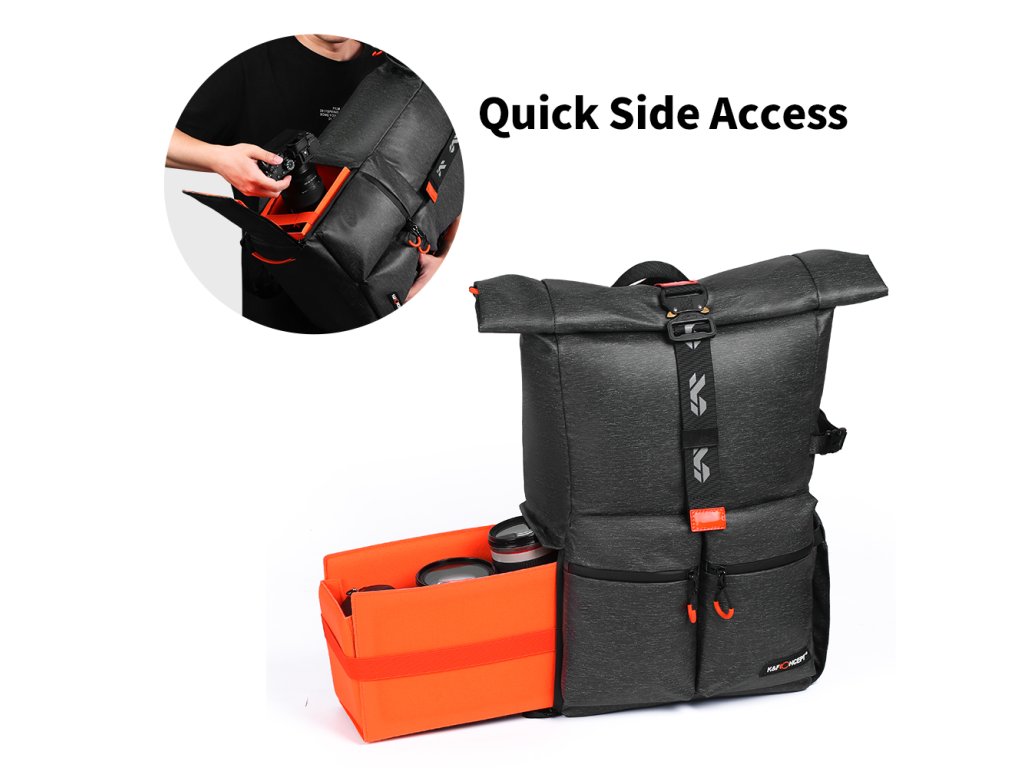 - Acces superior și lateral: rucsacul superior antifurt cu acces rapid vă menține echipamentul camerei în siguranță, în timp ce accesul lateral vă permite să ajungeți instantaneu la camera dvs.