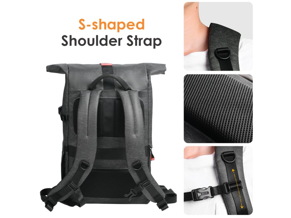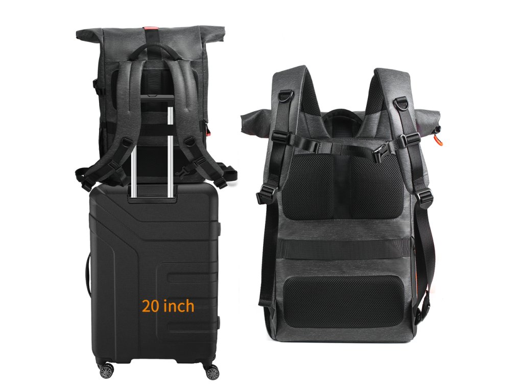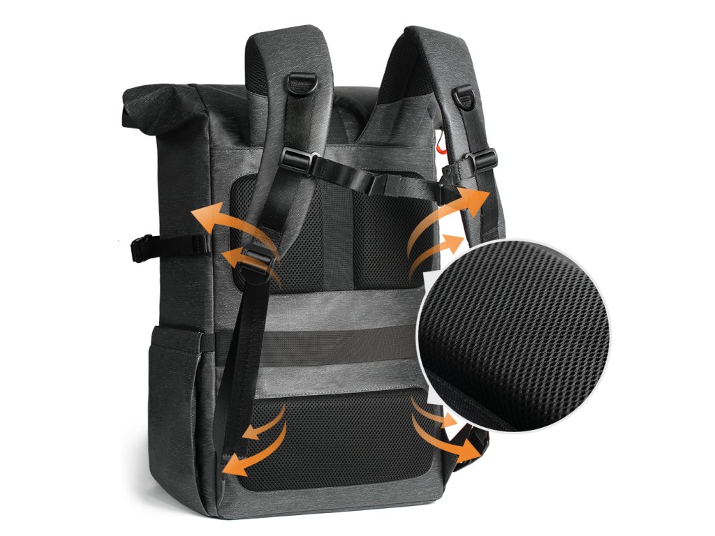 - Călătorie ușoară: plasa de aer respirabilă, cu o curea de umăr extinsă și întărită și spate și curea de piept reglabilă lucrează împreună pentru a distribui uniform greutatea și pentru a reduce efortul de pe rucsac.
