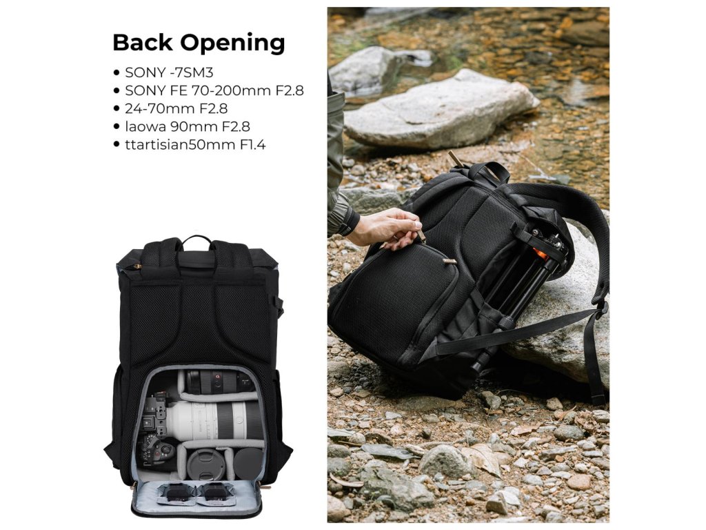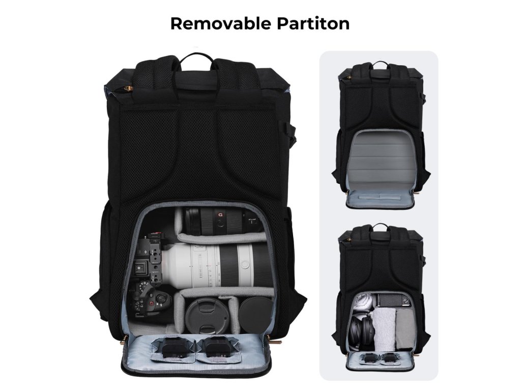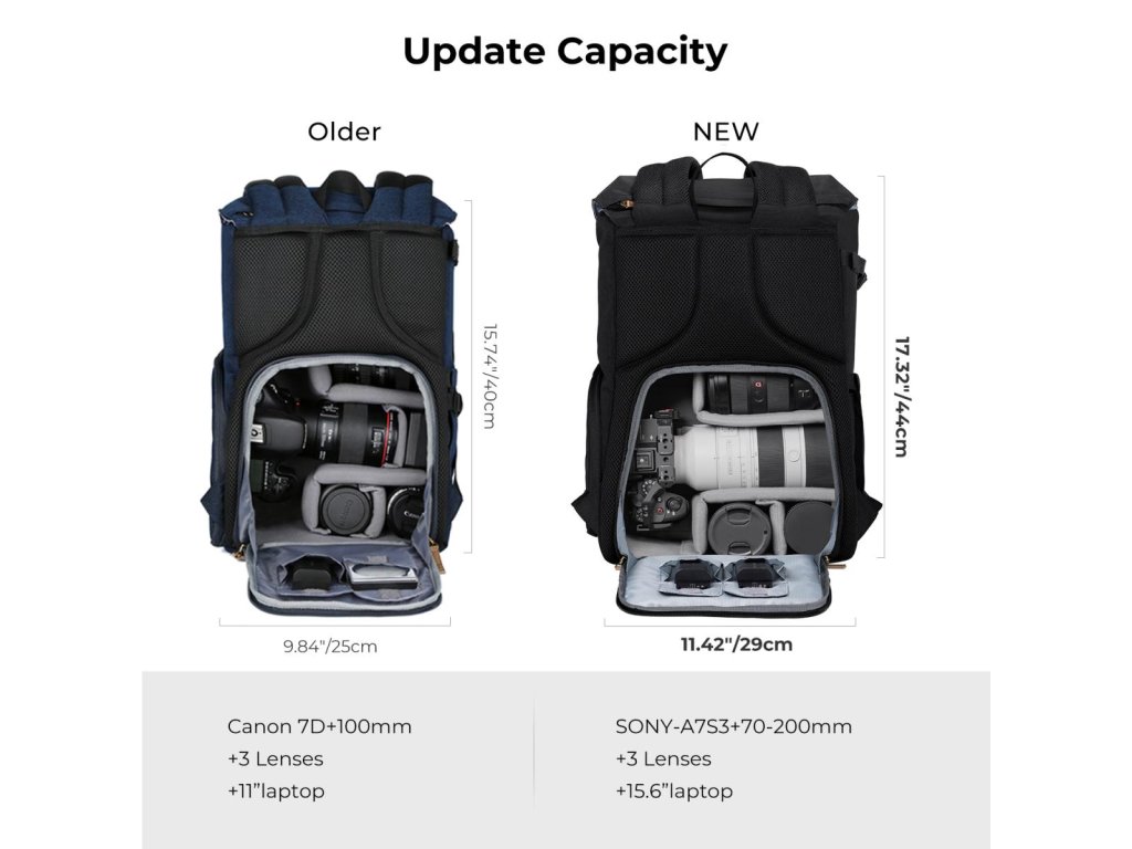 * ?Extindere capacitate? 9,84"*6,29"*15,74"; Acest rucsac pentru cameră poate ține 1 cameră + 3 lentile + trepied iPad+ de 7-11 inchi și alte nevoi esențiale de fotografie.
