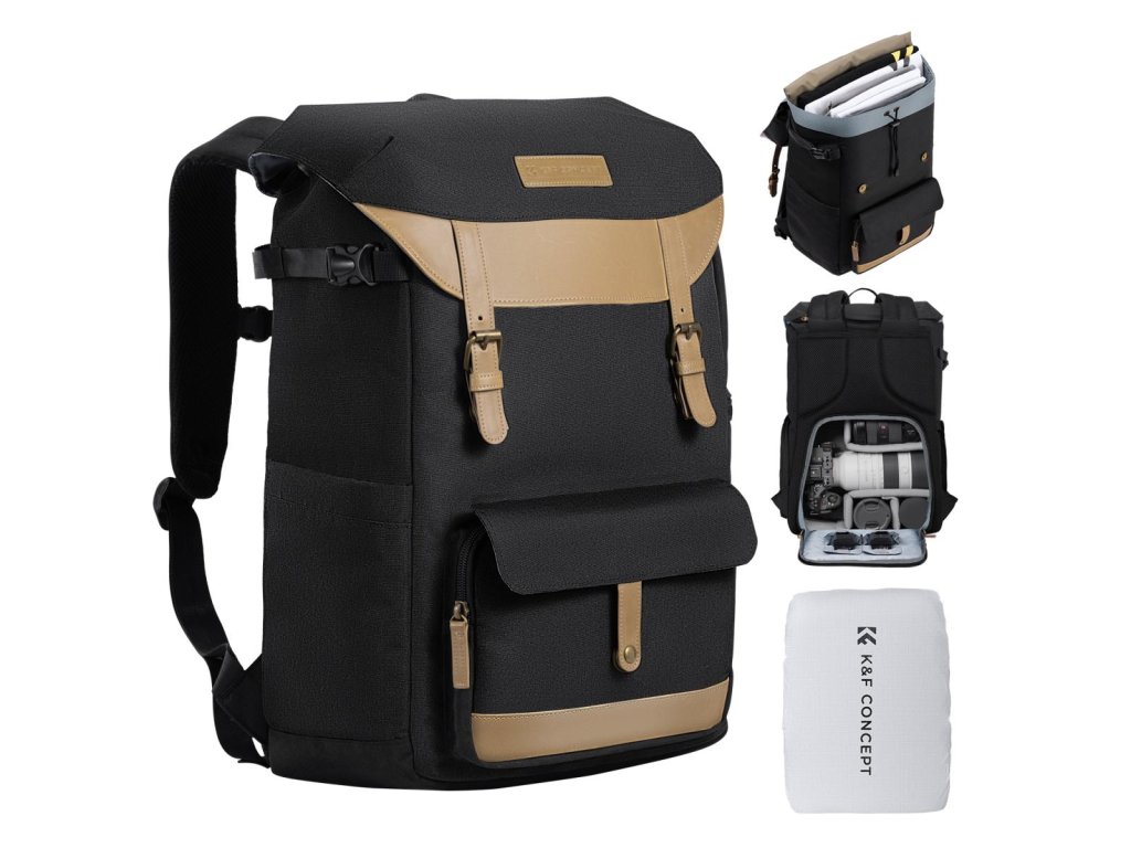 Rucsacuri K&F Concept pentru fotografi Geantă de călătorie cu compartiment pentru laptop și husă de ploaie Genți multifuncționale impermeabile pentru aparate foto DSLR Negru