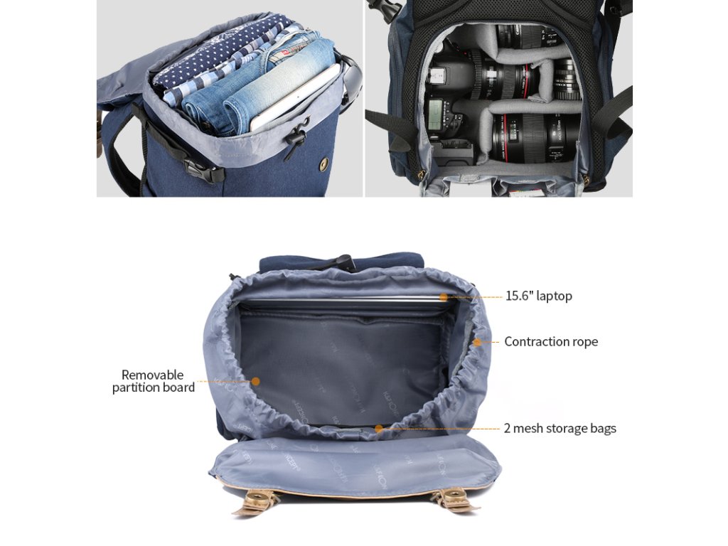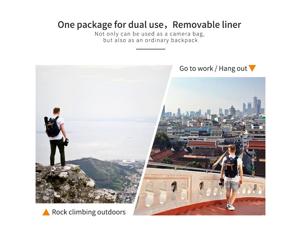 • Material rezistent la apă și material de răcire nano, design cu curbă fiziologică. Acest rucsac pentru cameră este un partener bun