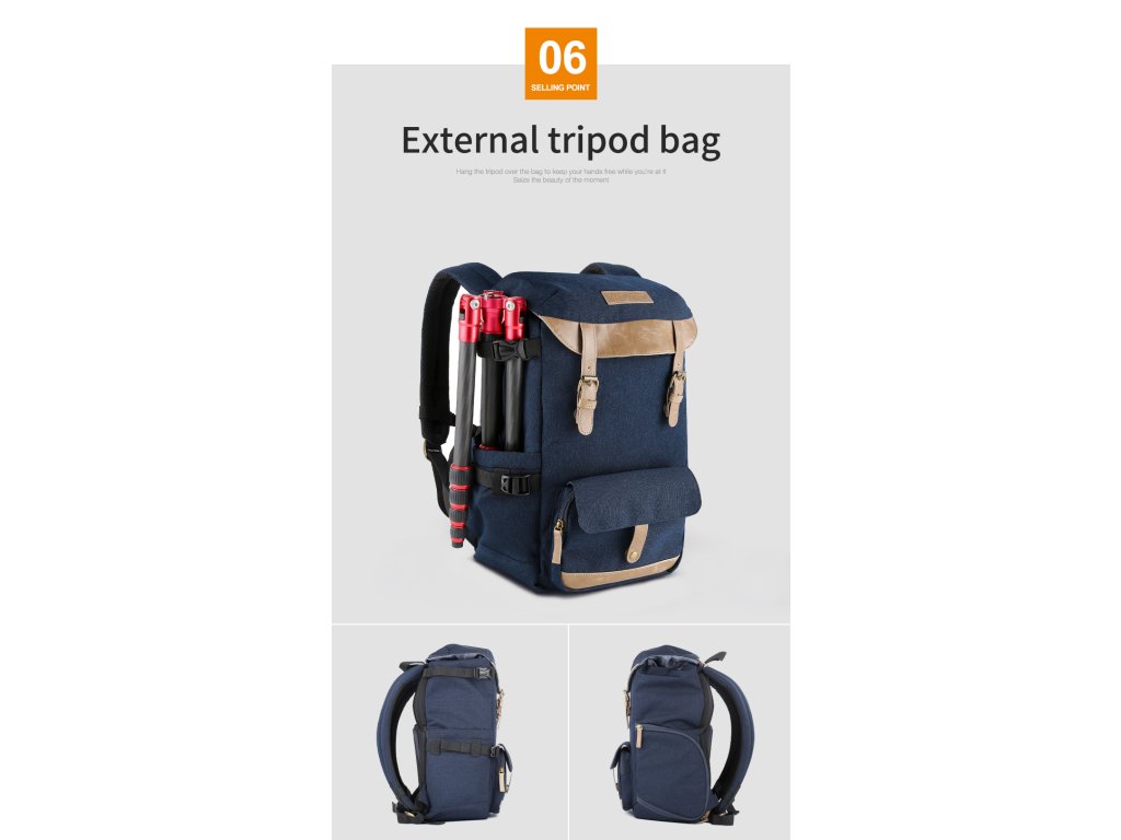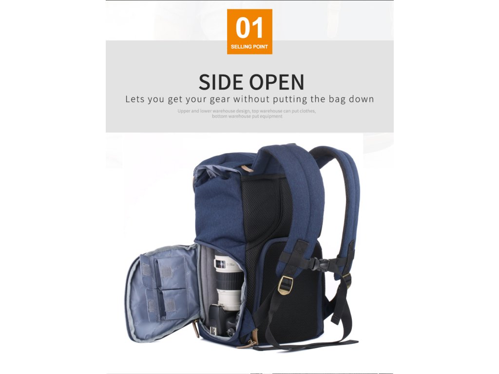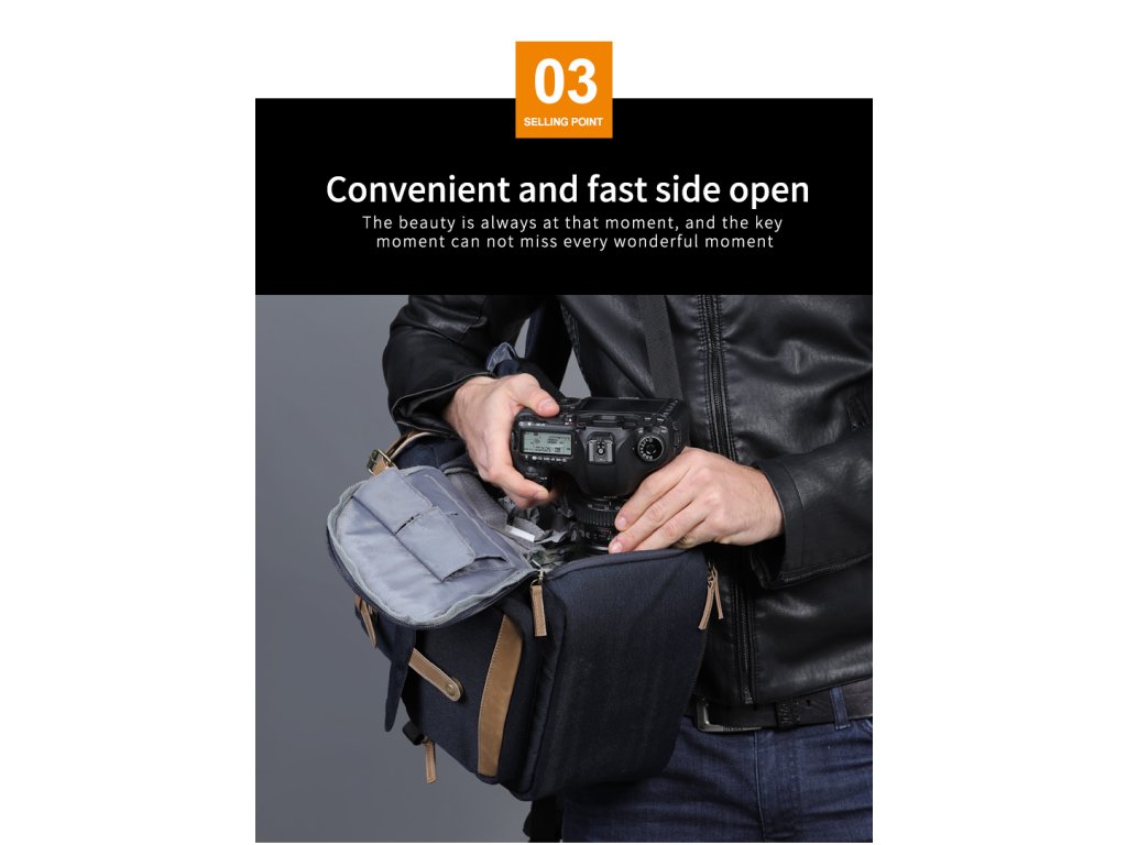 •Abordarea corectă vă permite să vă recuperați echipamentul fără a fi nevoie să scoateți geanta. Și, de asemenea, curele trepied profesionale de designer în stânga.