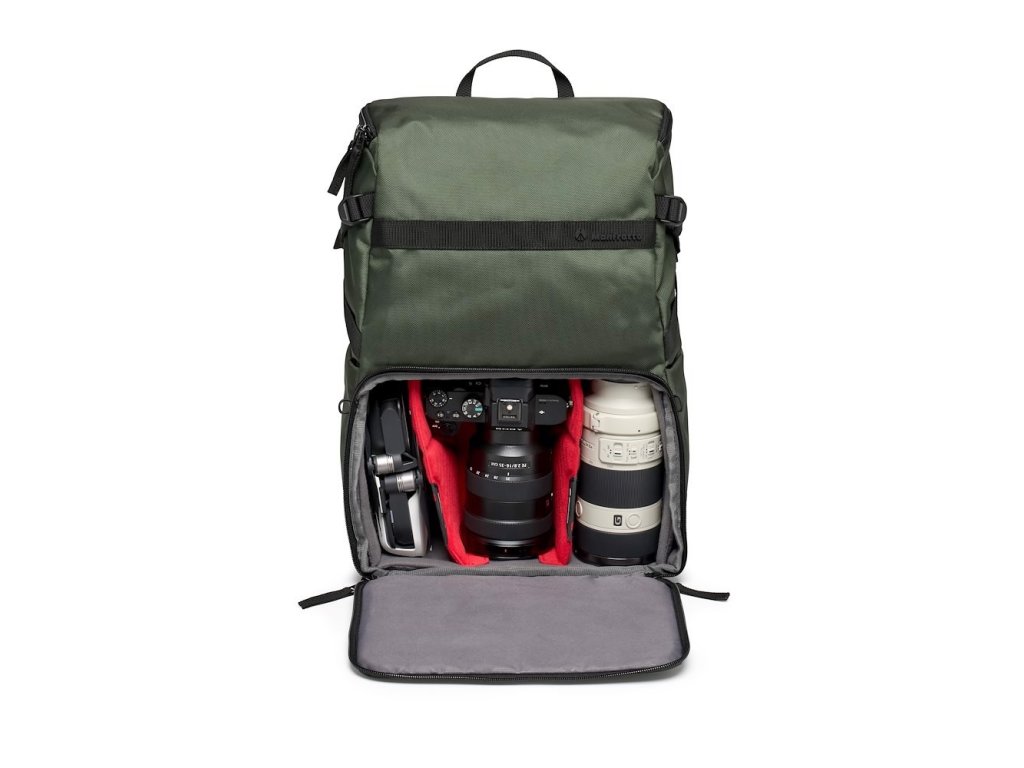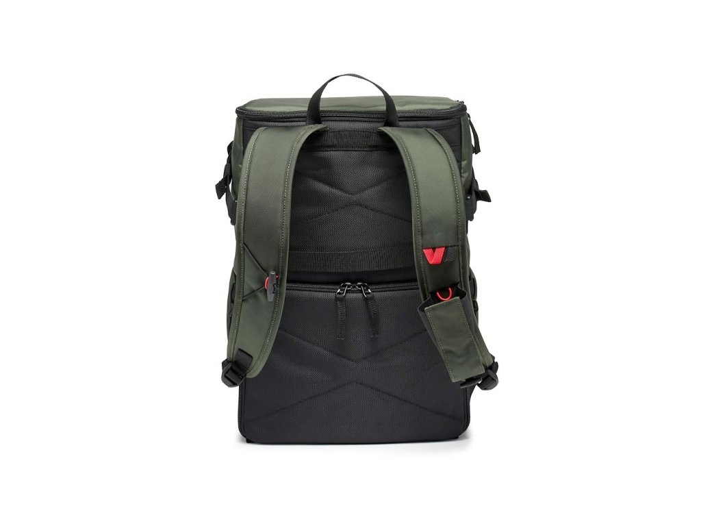 Compartimentul căptușit detașabil pentru cameră este nou-nouțSistem de protecție Manfrotto M-Guard™. Fabricat din spumă specială EVA de înaltă densitate, oferărăspuns excepțional de absorbție a șocurilor cu un profil super subțire. Modelele de pliere personalizabile permit o versatilitate maximă pentru a vă proteja complet echipamentul camerei, maximizând în același timp utilizarea spațiului. Există o husă specială detașabilă pentru laptop, căptușită, care poate găzdui un laptop de până la 14 inchi, care poate fi accesat prin partea superioară și utilizat separat.