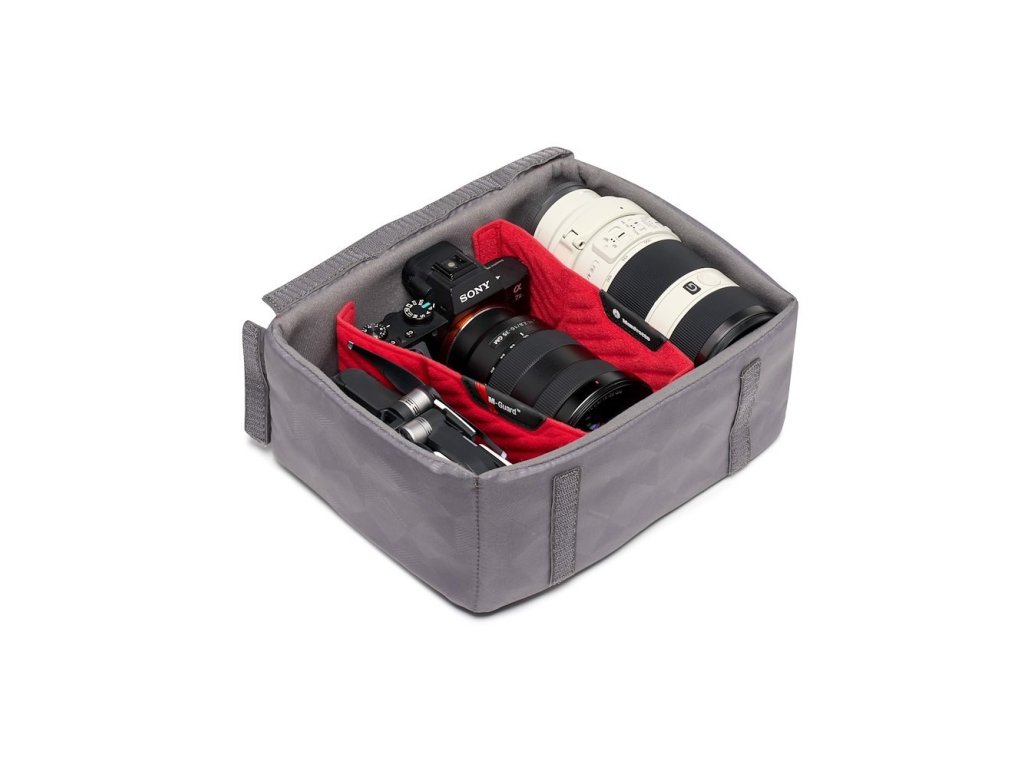 Theaccesul la compartimentul camerei este înlocuibil față în spate datorită unui design unic care vă permite să alegeți abordarea care vi se potrivește mai bine: pur și simplu scoateți compartimentul camerei și husa laptopului și mutați instantaneu din spate în față în timp ce repoziționați husa laptopului.