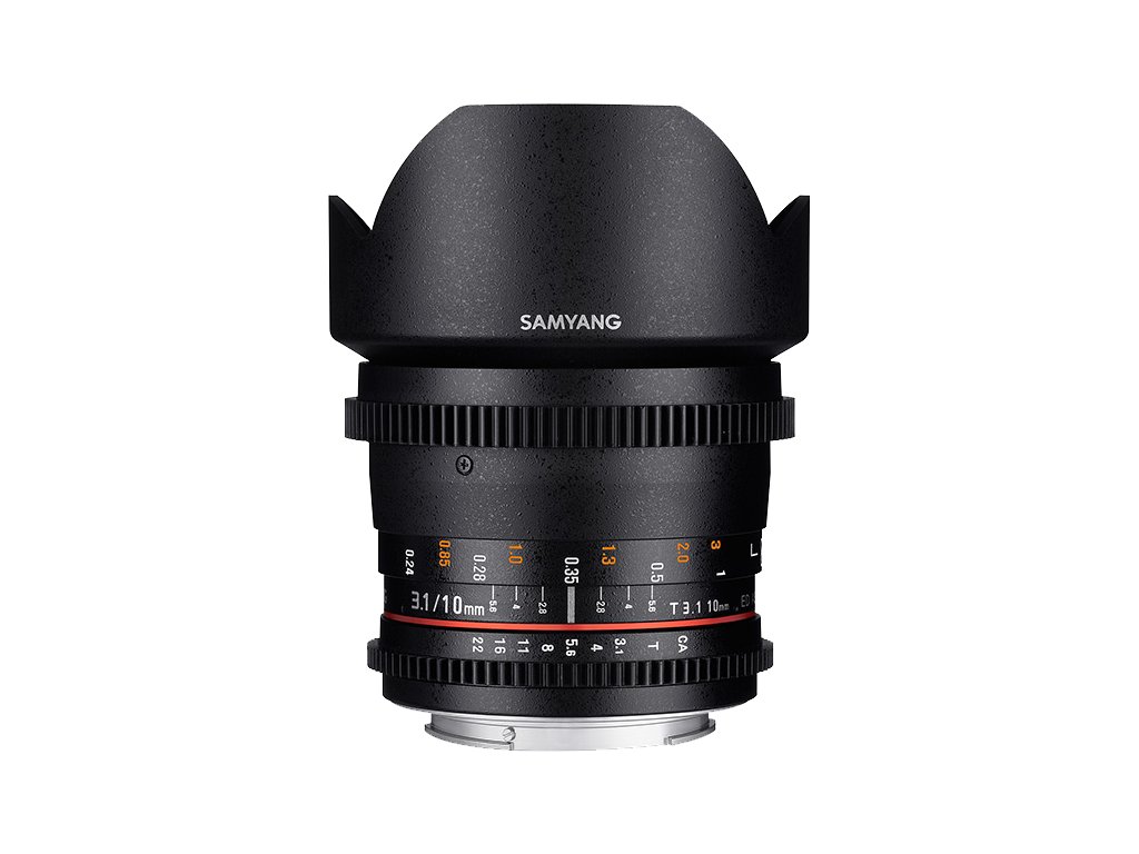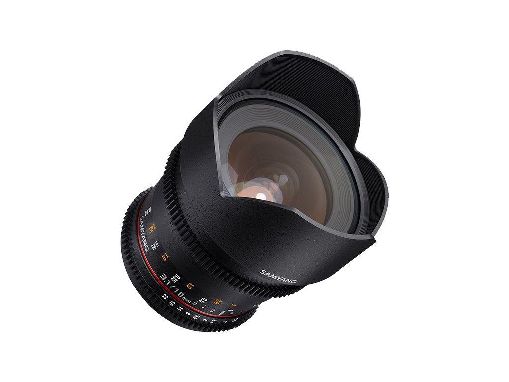 Samyang 10mm T/3.1 VDSLR ED AS NCS CS II este un obiectiv cu focalizare manuală cu unghi ultra-larg conceput pentru camerele cu senzor APS-C.Obiectivul Samyang 10mm T/3.1 VDSLR ED AS NCS CS II este proiectat cu atenție pentru producția profesională de filme și videoclipuri. Puteți modifica luminozitatea ușor și liniștit folosindinel de deschidere cu control continuu al diafragmei.