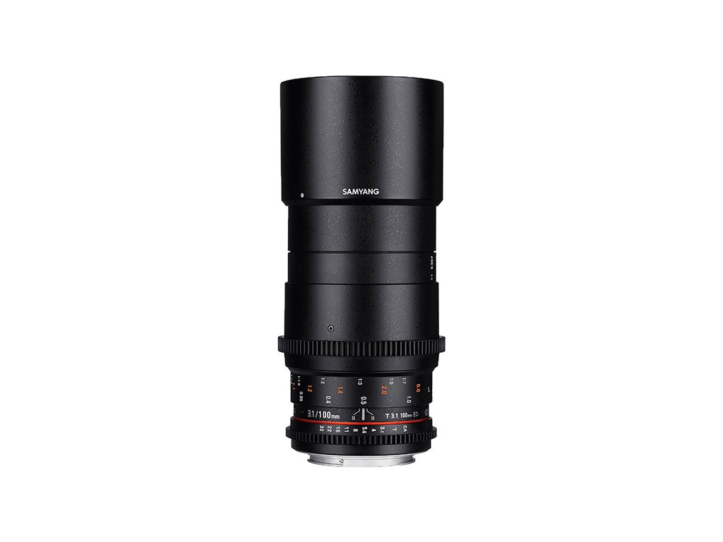 Samyang 100 mm T3.1 VDSLR ED UMC Macro este un teleobiectiv video cu focalizare manuală conceput pentru camerele cu senzor full frame. Raportul maxim de mărire este de 1:1. Cu culori vii și focalizare fină, acest obiectiv macro este cea mai bună alegere pentru imagini detaliate cu flori și insecte. Poate fi folosit și ca teleobiectiv de 100 mm pentru peisaje și portrete.Obiectivul Samyang 100 mm T3.1 VDSLR ED UMC Macro permite o lucrare mai fină cu videoclipuri datorită valorilor marcate de deschidere „T” și a scalei de distanță pe ambele părți ale obiectivului. Pentru sistemul de focalizare de urmărire este instalat un inel de focalizare dintat. Datorită inelelor de ascuțire netede, putețischimbați diafragma în liniște și fără probleme.