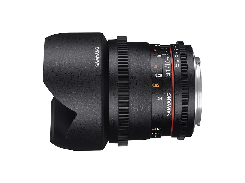Samyang 10mm T/3.1 VDSLR ED AS NCS CS II este un obiectiv cu focalizare manuală cu unghi ultra-larg conceput pentru camerele cu senzor APS-C.Obiectivul Samyang 10mm T/3.1 VDSLR ED AS NCS CS II este proiectat cu atenție pentru producția profesională de filme și videoclipuri. Puteți modifica luminozitatea ușor și liniștit folosindinel de deschidere cu control continuu al diafragmei.