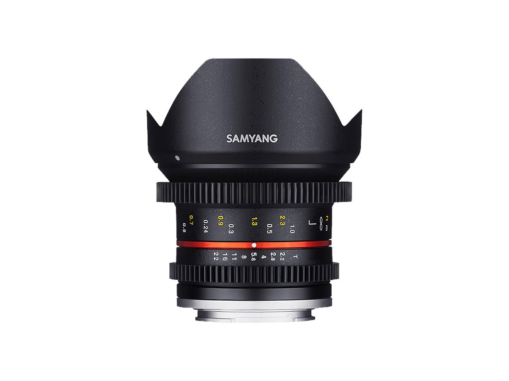 Samyang 12mm T2.2 Cine NCS CS este un obiectiv video manual cu unghi larg conceput pentru camerele fără oglindă cu senzor APS-C. Datorită luminozității sale foarte ridicate, permite înregistrarea video chiar și în condiții de iluminare slabă.Numărul de deschidere T, care reprezintă valoarea reală a transmisiei luminii, este marcat direct pe obiectiv. Împreună cu sistemul manual de deschidere, permite filmări precise și confortabile în diferite condiții de lumină.