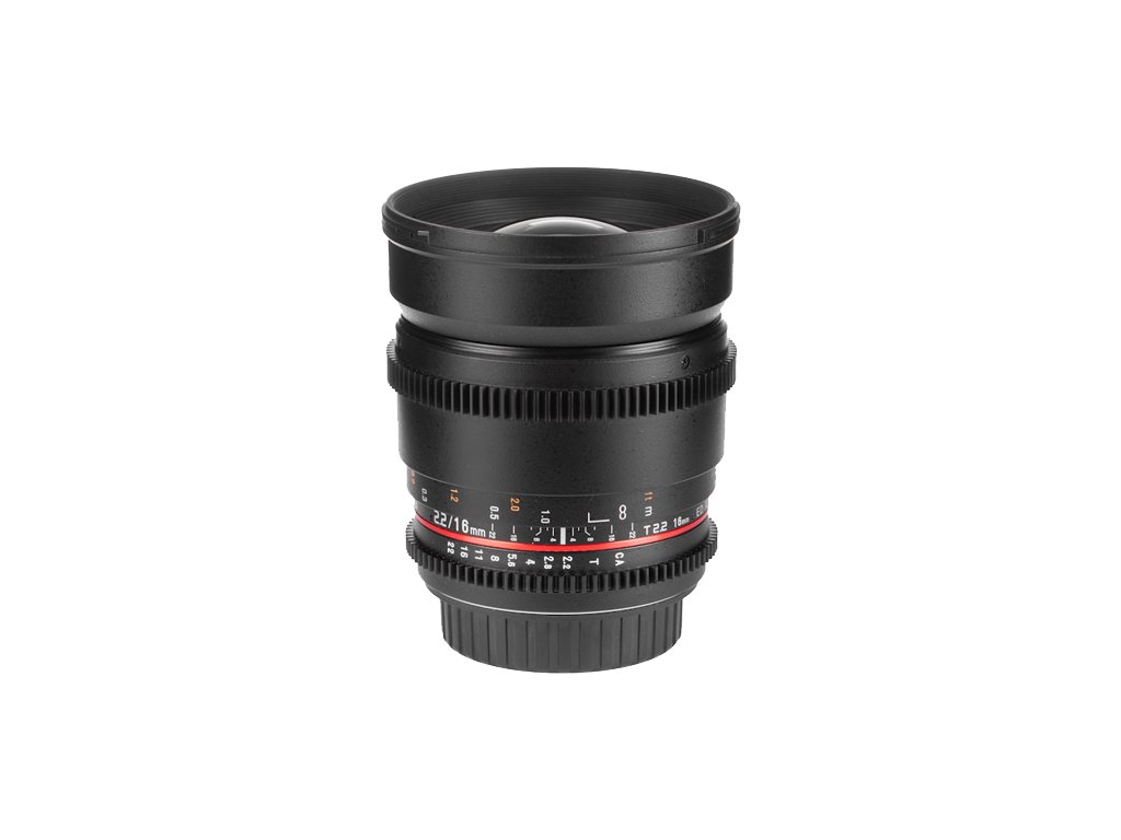 Samyang 16mm T/2.2 VDSLR ED AS UMC CS II este un obiectiv cu unghi larg cu focalizare manuală conceput pentru camerele cu senzor APS-C.Samyang 16mm T/2.2 VDSLR ED AS UMC CS II este special conceput pentru filmarea video și filme profesionale. Un inel de focalizare este instalat pentru sistemul de focalizare de urmărire.
