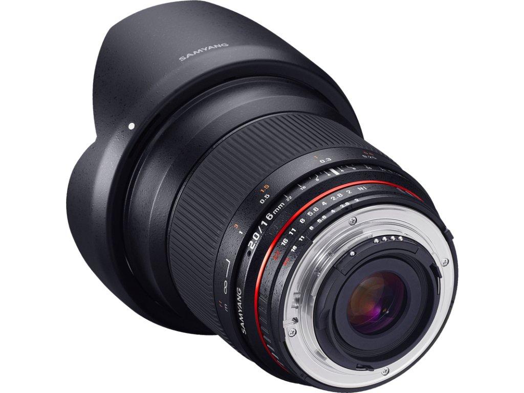 Obiectivul Samyang 16mm F2.0 ED AS UMC CS este un obiectiv manual cu unghi ultra-larg conceput pentru camerele digitale SLR cu senzor APS-C. Obiectivul oferă performanțe optice excepționale la un preț accesibil pentru toată lumea. Calitate excelentă a imaginii, mică distorsiune. Pentru utilizare ori de câte ori este de așteptat un obiectiv cu unghi larg de înaltă calitate.Construcția acestei lentile constă din 13 elemente în 11 grupuri, inclusiv 1 sticlă cu dispersie foarte scăzută a luminii, 1 element asferic și 1 element asferic hibrid. Are un tratament de suprafață Ultra Multi Coating (UMC), care este cel mai recent tratament de suprafață antireflex, care asigură reducerea blițurilor și umbrelor nedorite.