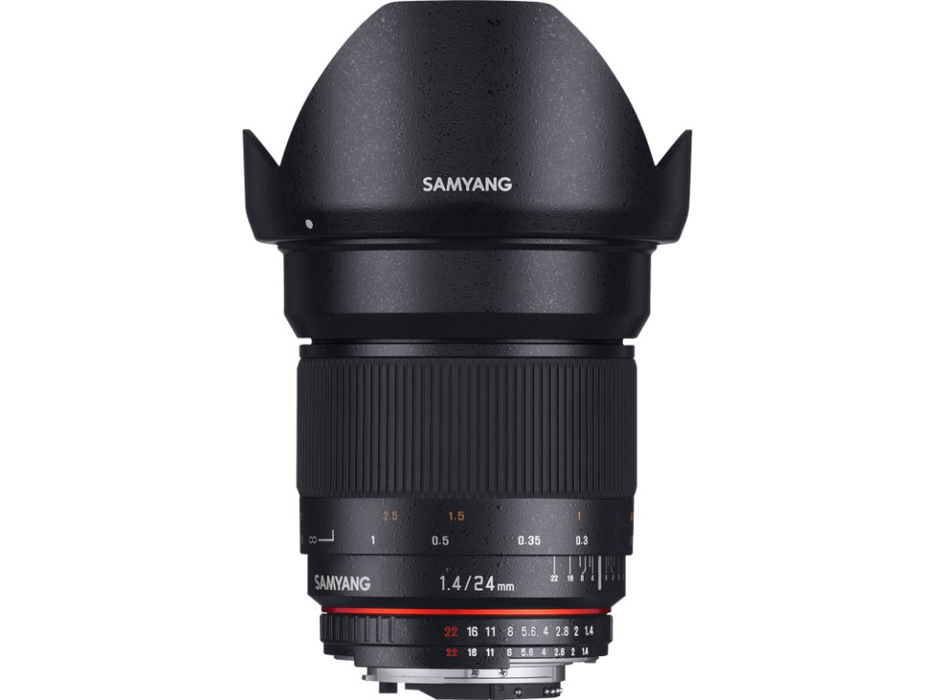 Samyang 24mm f/1.4 ED AS IF UMC este un obiectiv cu unghi larg de înaltă calitate, cu luminozitate excelentă, conceput pentru camere cu un cadru complet sau senzor APS-C. Este ideal pentru camerele full-frame, reprezentând un obiectiv cu unghi larg de primă clasă pentru fotografiarea străzilor, peisajelor și arhitecturii, chiar și în condiții de lumină scăzută.Samyang 24mm f/1.4 ED AS IF UMC este un obiectiv cufocalizare manuală. Inelul de focalizare manuală este larg, ușor accesibil și perfect adaptat la majoritatea aplicațiilor fotografice. Focalizarea precisă la distanță foarte apropiată sau focalizarea în situații critice poate fi obținută folosind focalizarea live view, care este disponibilă pentru majoritatea modelelor de camere mai noi. În plus, Samyang 24mm f/1.4 oferă datorită designului și luminozității ridicatefrumos bokeh.
