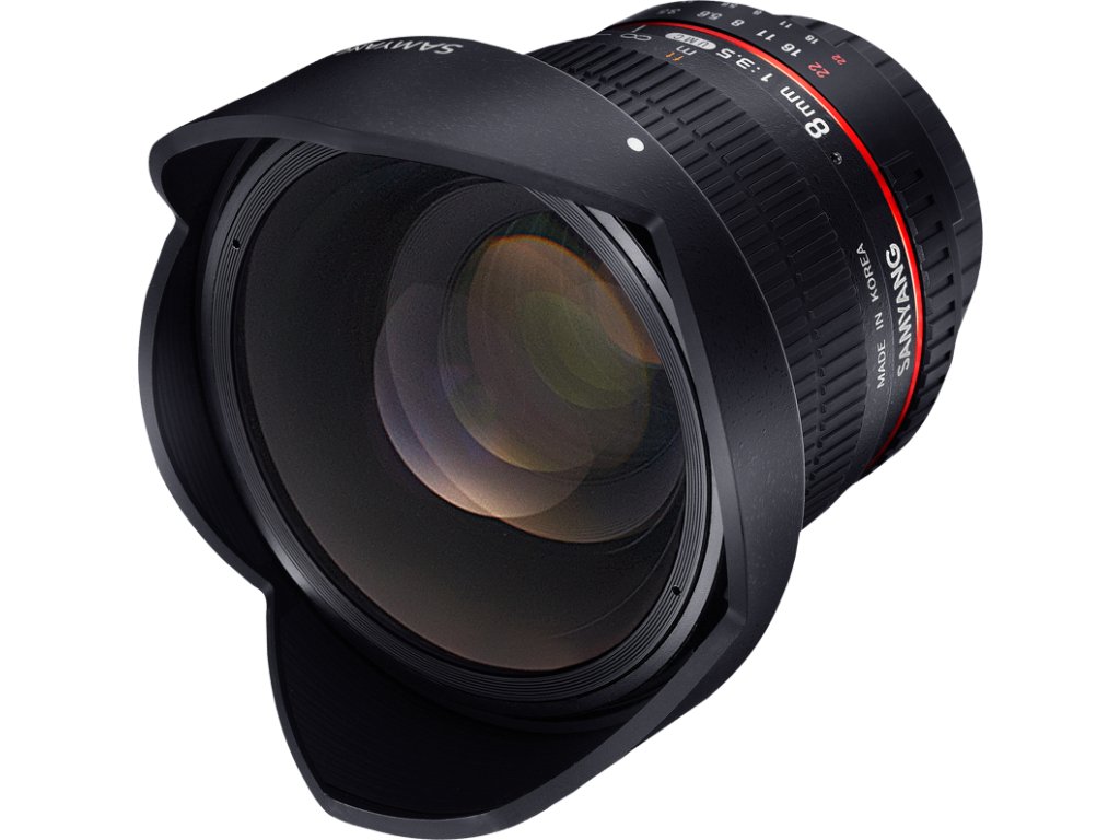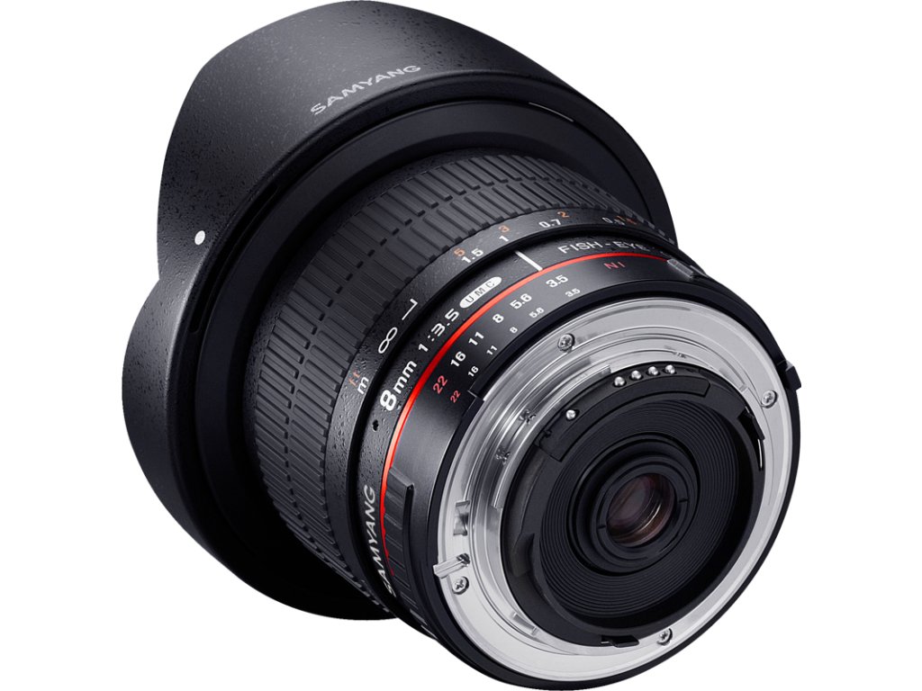 Samyang 8mm f/3.5 Fish-Eye este compatibil cu monturile Canon EF și EF-M, Fujifilm X, Olympus / Panasonic 4/3 și Micro 4/3, Pentax K, Samsung NX sau Sony A și E.