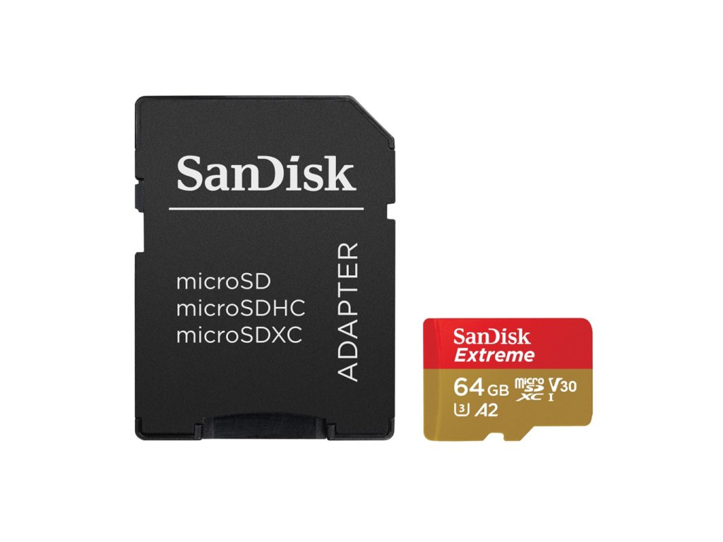SanDisk Extreme microSDXC 64 GB + Adaptor SD 170 MB/s și 80 MB/s A2 C10 V30 UHS-I U3