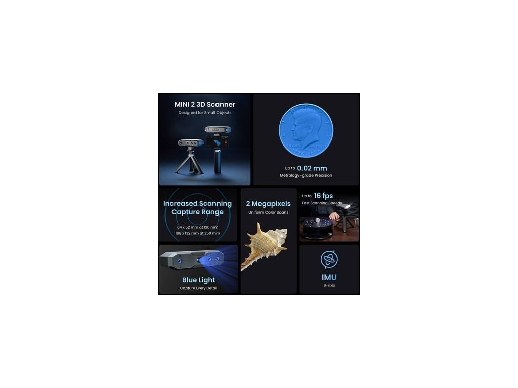 Scaner 3D portabil Revopoint MINI 2, 0,02 mm, 10 fps, IMU pe 9 axe, WiFi 6