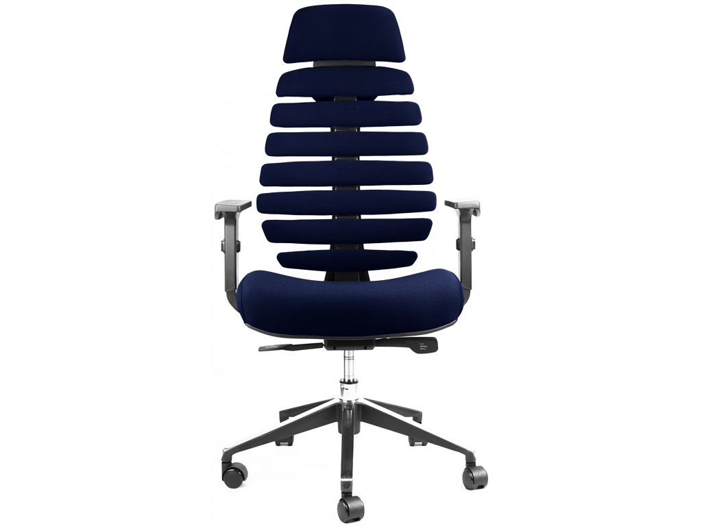Scaun de birou FISH BONES PDH, plastic negru, 26-67 albastru, cotiere 3D