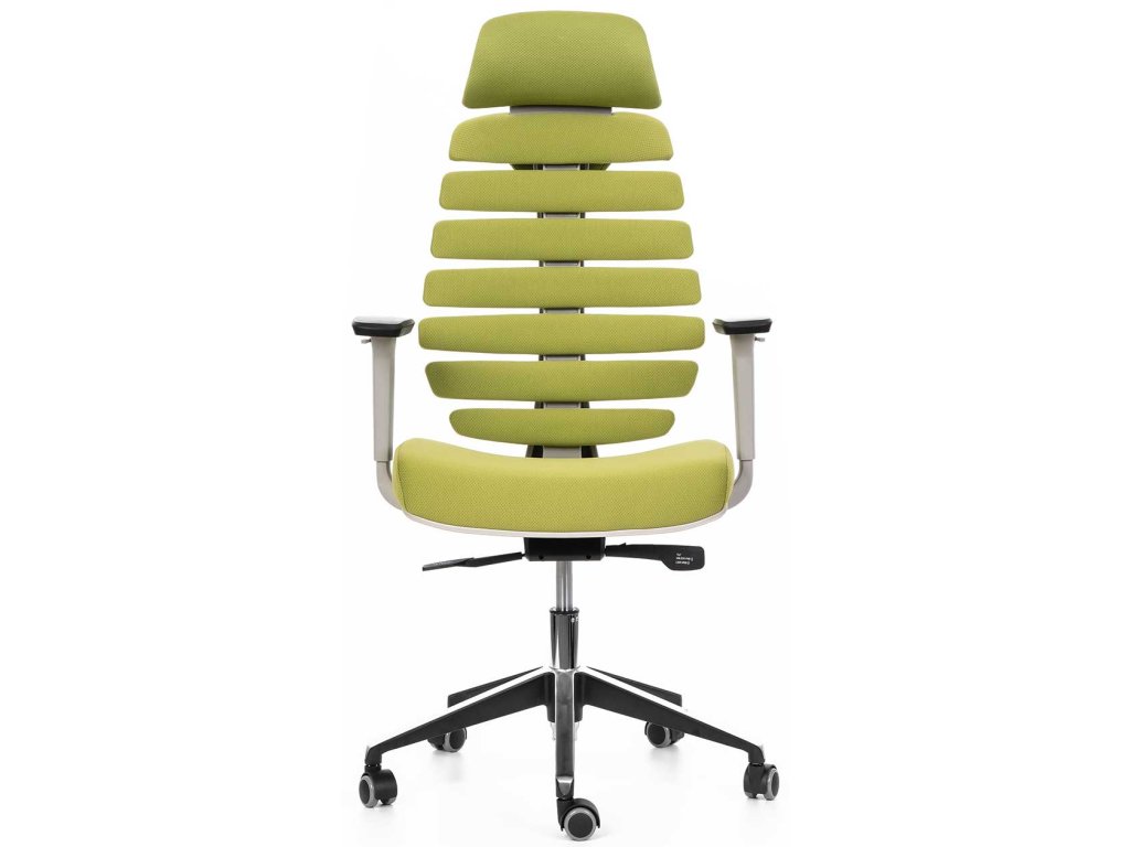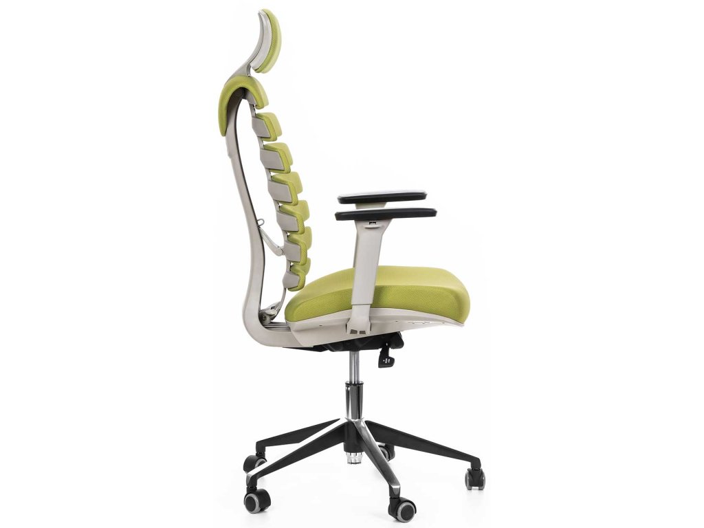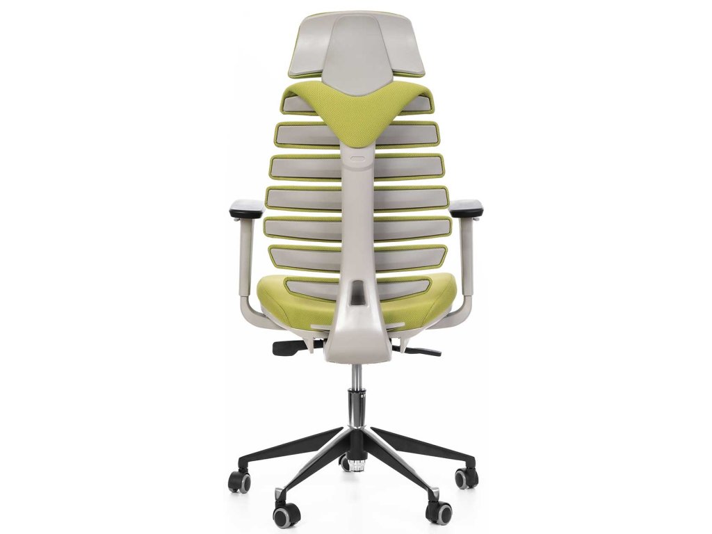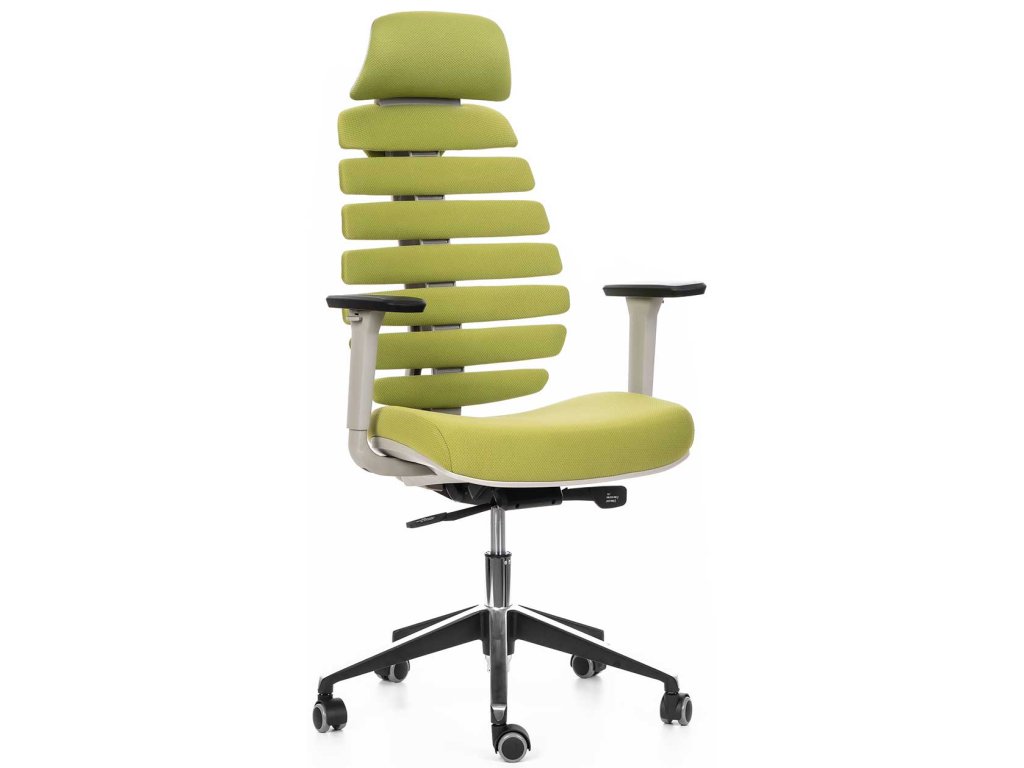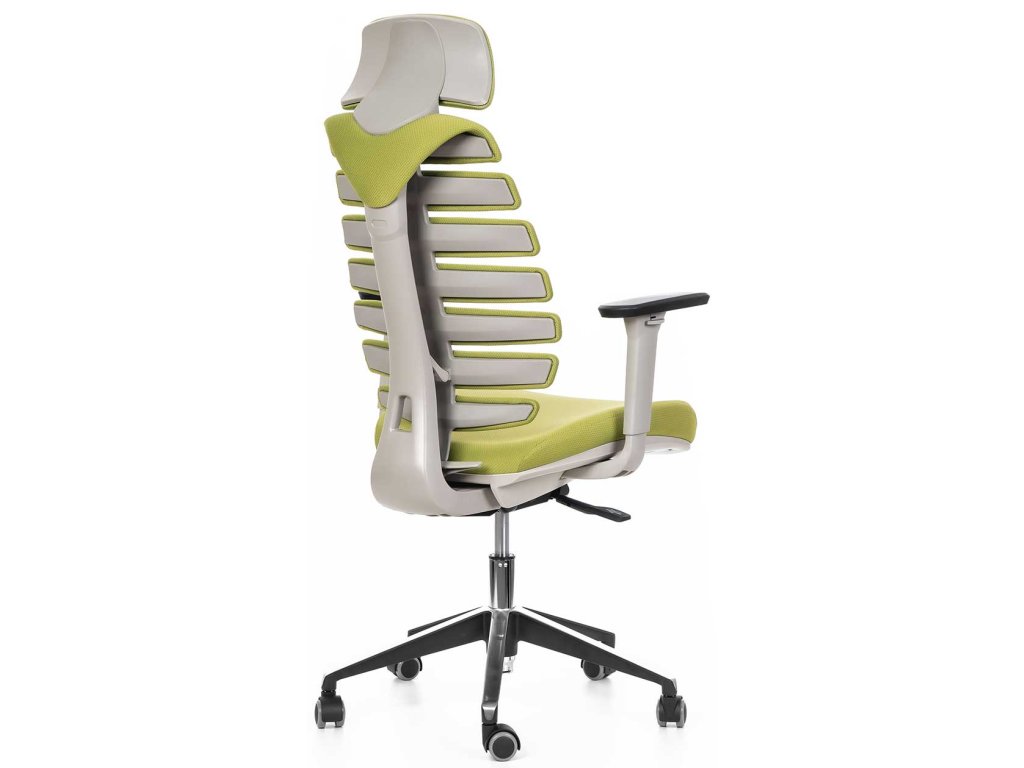 Scaun de birou FISH BONES PDH plastic gri, 26-66 verde, cotiere 3D