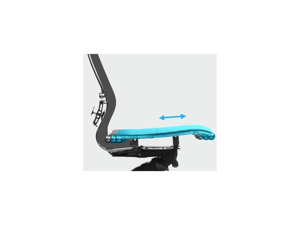 Glisorul pentru adâncimea scaunului face posibil acest lucru reglați scaunul la înălțimea utilizatorului, care asigură o așezare corectă din punct de vedere ergonomic. Pentru figurile mai mici, este mai bine să mutați scaunul mai aproape de spătar și pentru figurile mai înalte mai departe de spătar.