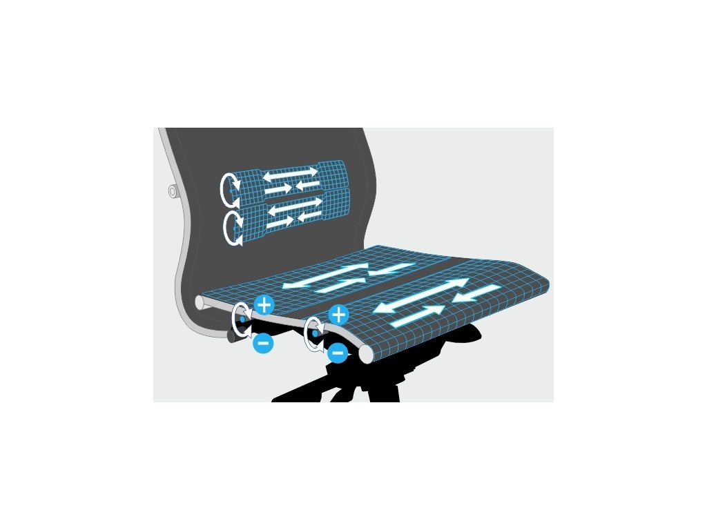 Reglarea în două zone a rigidității spătarului și a scaunului vă permite să adaptați scaunul la un anumit utilizator. Suportul lombar și duritatea scaunului pot fi ușor ajustate - la varianta mai moale sau mai tare.