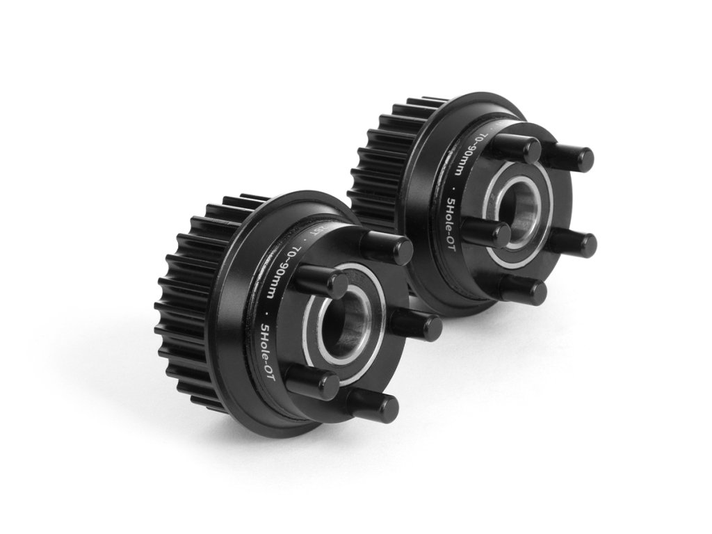 Roată dințată pentru plăcile electronice Exway. Pachetul contine 2 bucati. Scripete cu 5 pini pentru roți Orangatang Caguama 85mm și Orangatang Kegel 80mm. Material: metal frezat CNC. Lungimea recomandată a centurii 230 mm pentru modelele Flex, X1 Max și Wave; 255 mm pentru Atlas.Parametri suplimentari