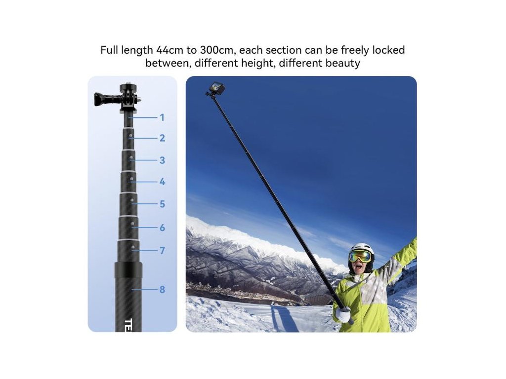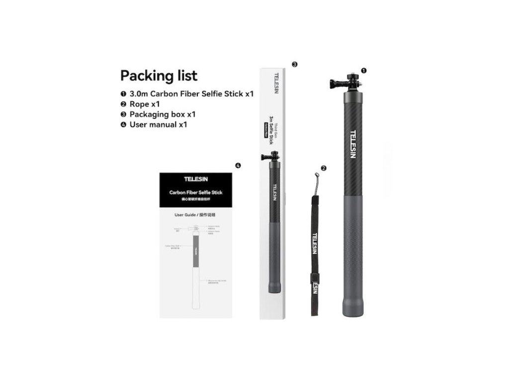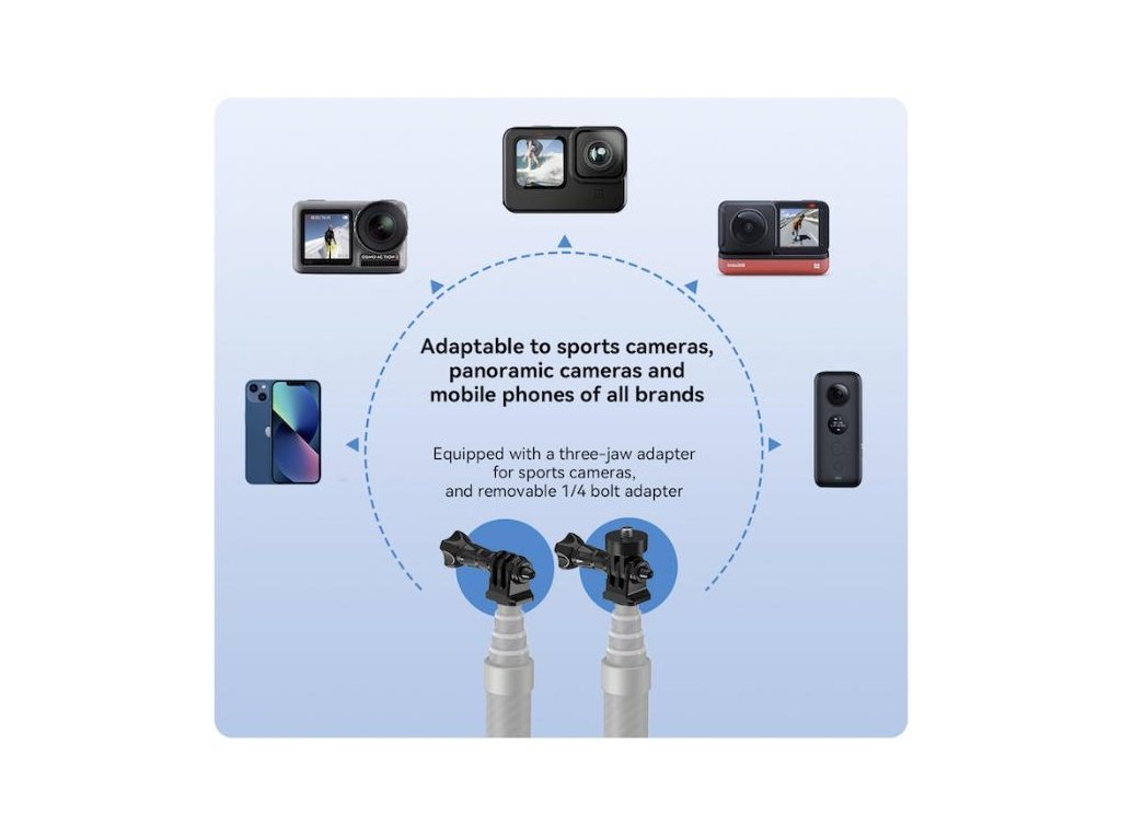 374g Lungime: 44-300 cm Cu șurub de 1/4 inch și orificiu pentru șurub de 1/4 inch Va fi invizibil cu camerele Insta360 / GoPro 360. Max. Sarcina utila: 300 gParametri suplimentari