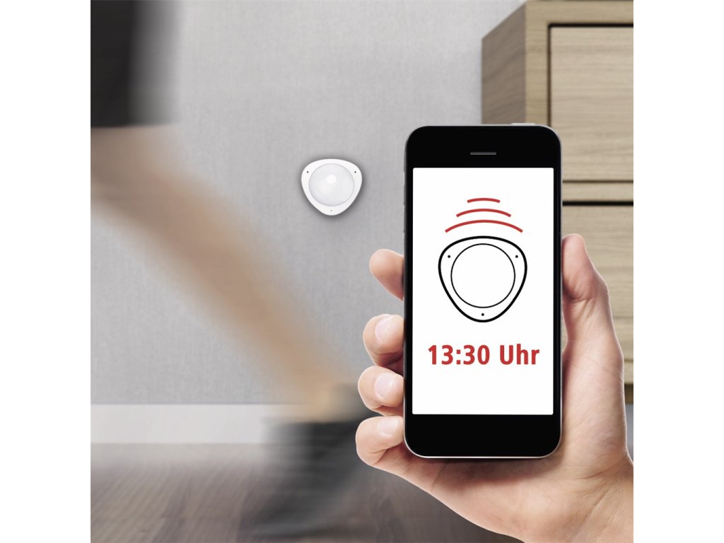 - supravegherea camerelor, coridoarelor sau spatiilor- senzorul de mișcare cu infraroșu poate fi integrat în rețeaua WiFi de acasă folosind aplicația gratuită Hama Smart Home și apoi controlat folosind un telefon mobil sau o tabletă