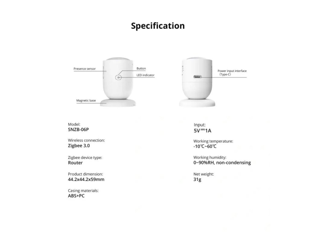 Cod: SH-SONOFF-SNZB-06P-2001Descriere detaliată a produsului