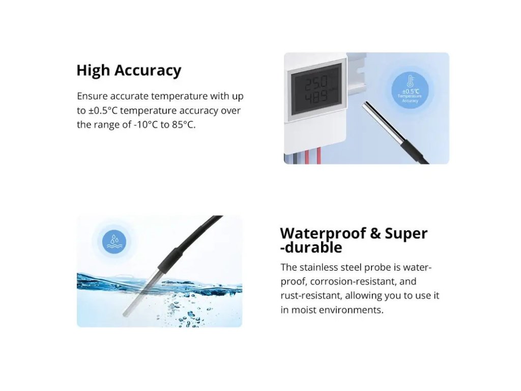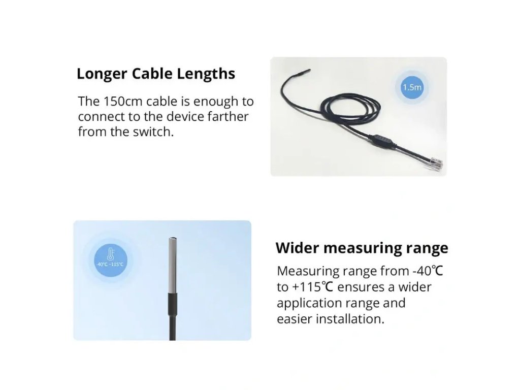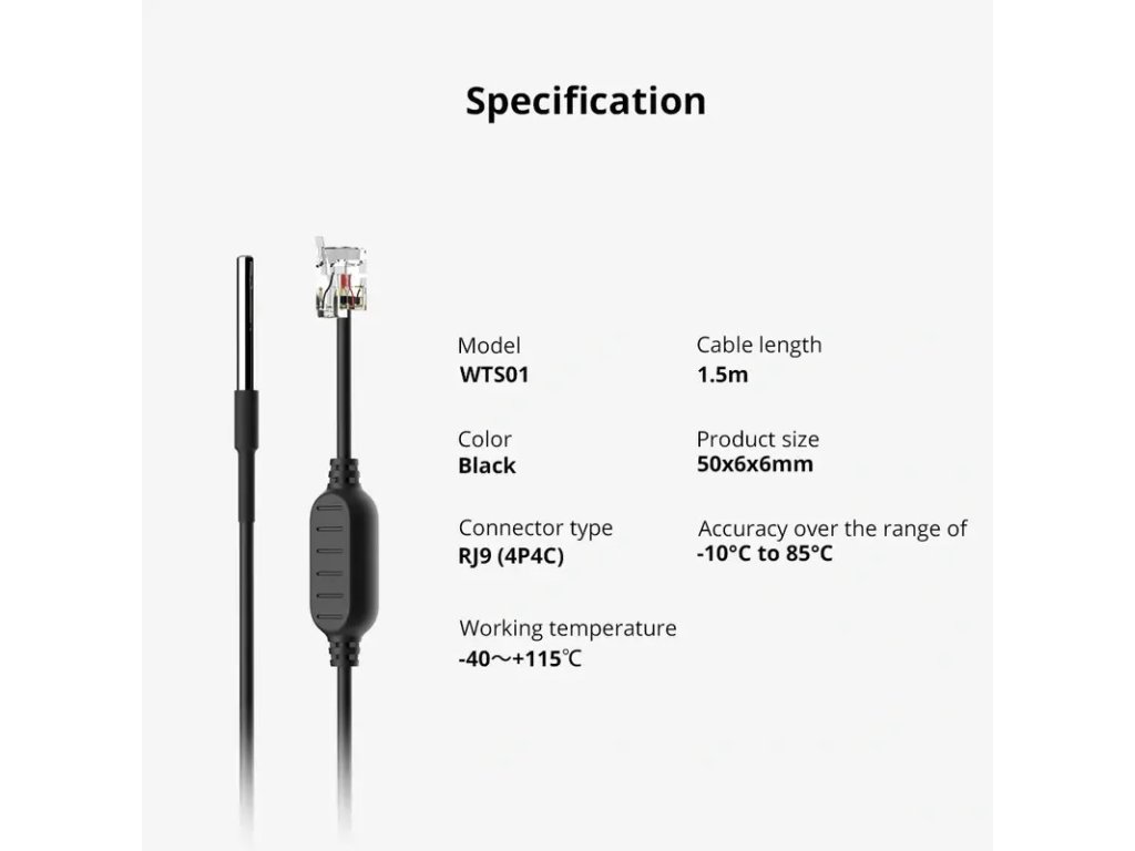 Senzor de temperatură impermeabil SONOFF WTS01 pentru seria TH cu conector RJ9 4P4C