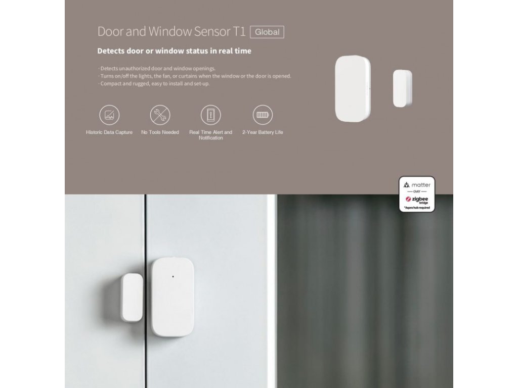 Senzor de ușă și fereastră AQARA T1 (DW-S03D) - senzor de ușă Zigbee 3.0