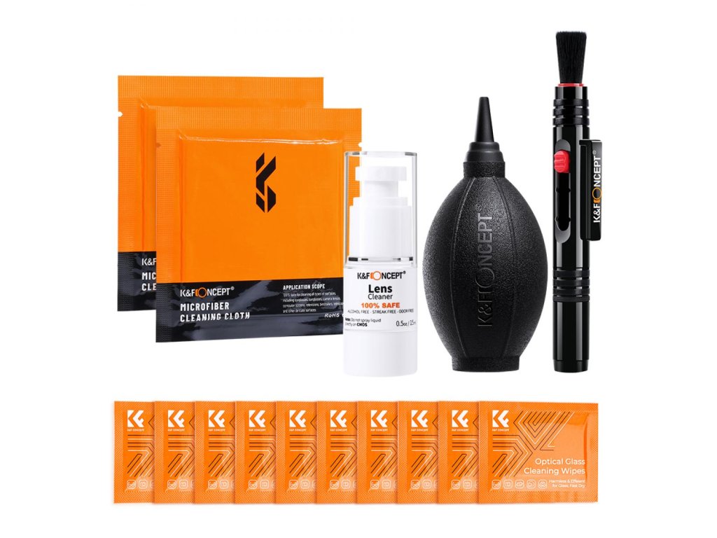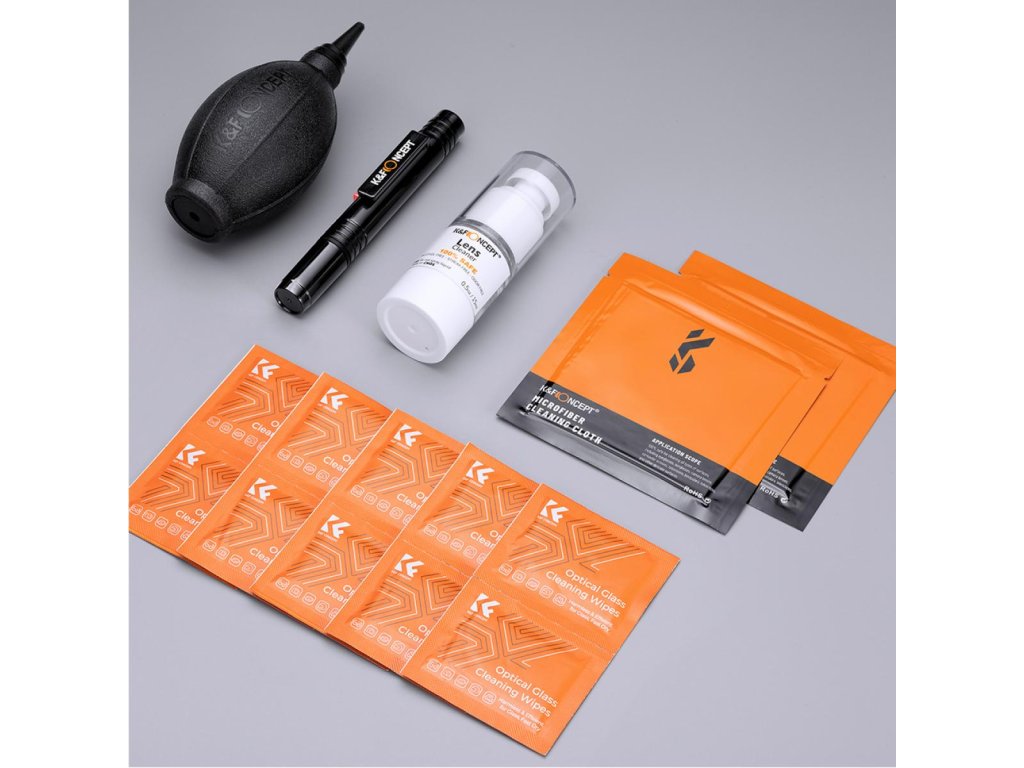 Set de curățare K&F Concept 15 în 1 (pânză de vacuum 2 + stilou de curățare + suflantă neagră din silicon + șervețele umede 10 + detergent 15 ml)