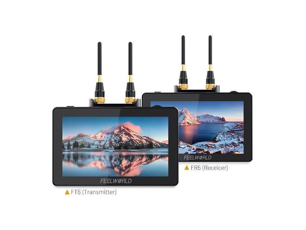 Monitoarele wireless FEELWORLD FT6/FR6 combină transmisia video fără fir și un monitor HD de înaltă calitate pentru a crea un kit de monitorizare ultra-ușor, fără cabluri, care vă oferă mobilitate completă pe scenă. Folosind tehnologia de antenă 2x 2dBi și tehnologia de codificare și decodare H.264 pentru procesare profesională a imaginii, imagine mai curată, rază de până la 250 m și latență mai mică (0,007 s). FR6 poate primi semnale fără fir HD necomprimate de la transmițătorul FT6. Deși FT6 și FR6 au transmisie wireless de imagine încorporată, ele mențin un factor de formă subțire: dimensiuni mici de 5,5 inci și o greutate de doar 370 g, ideale pentru fotografia mobilă la locație.