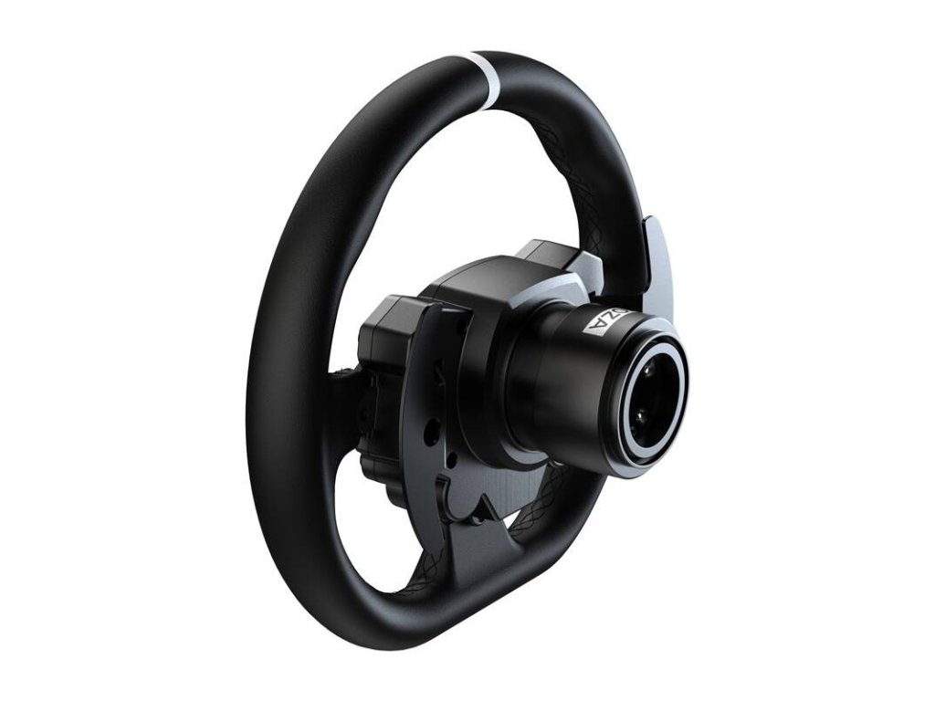 Pentru iubitorii de hardware high-end, setul este completat de volanul FSR Formula. Este realizat dintr-un cadru din fibră de carbon de dimensiuni mari, cu mânere ergonomice din piele perforată și oferă o experiență la nivel profesional. Ecranul HD de 4,3 inchi încorporat cu 15 interfețe de utilizator permite monitorizarea ușoară a parametrilor cheie, în timp ce butoanele suplimentare oferă control deplin asupra setărilor în timpul mersului. Conectivitatea USB opțională crește compatibilitatea cu o varietate de sisteme.