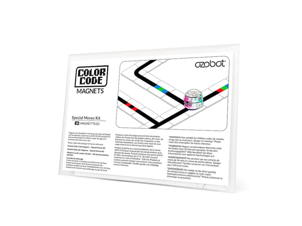 Setul de expansiune magnetică Ozobot cu mișcări speciale este o combinație de piesele Ozobot cu coduri de culoare și de urmărire a liniilor negre. Le permite elevilor să dezvolte experiență într-o gamă largă de abilități. Magneții cu coduri de culori și căptușiți sunt dimensionați convenabil și ușor de utilizat. Sunt ușor de manevrat datorită dimensiunilor lor practice și sunt ideale pentru tinerii care învață care abia încep să descopere lumea codării interactive.Calitate și longevitate