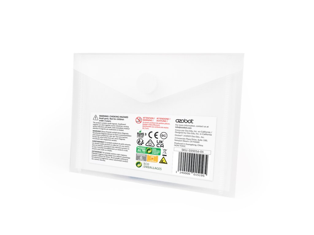 Setul de expansiune magnetică Ozobot este o combinație de piesele Ozobot cu coduri de culori și linie neagră care urmăresc traseul. Le permite elevilor să dezvolte experiență într-o gamă largă de abilități. Magneții cu coduri de culori și căptușiți sunt dimensionați convenabil și ușor de utilizat. Sunt ușor de manevrat datorită dimensiunilor lor practice și sunt ideale pentru tinerii care învață care abia încep să descopere lumea codării interactive.Calitate și longevitate
