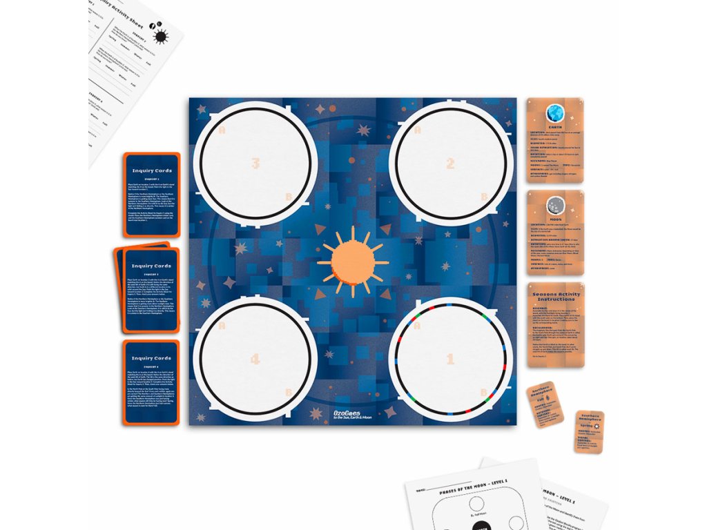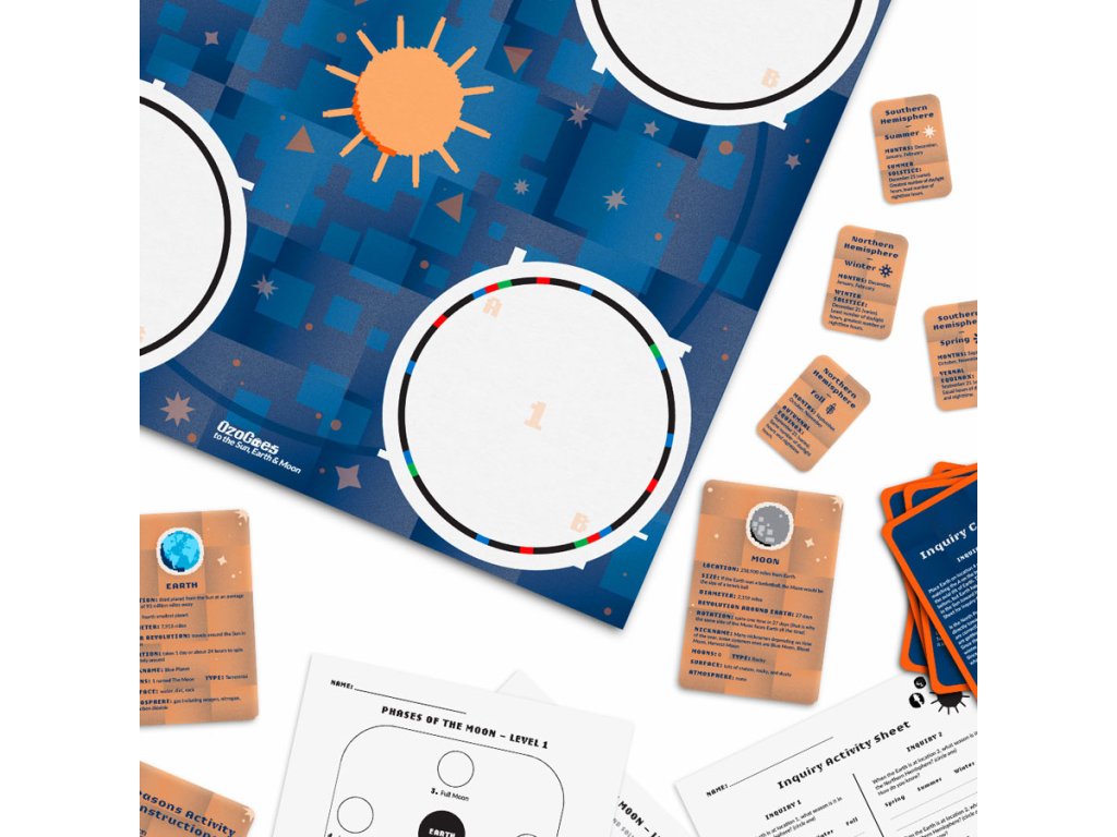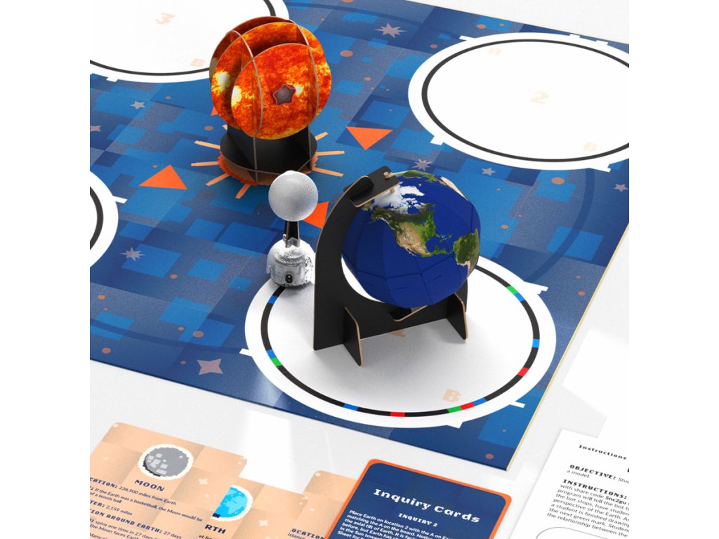 De ce recunoaștem patru faze principale ale lunii? Și de ce se alternează diferite anotimpuri pe Pământ? Explicați aceste și alte fenomene interesante de pe planeta noastră cu ajutorul unui model ilustrativ și susțineți interesul tinerilor studenți pentru această problemă.Împreună, ei asamblează modele ale planetelor și le așează pe suprafața de joc. Cu ajutorul robotului Ozobot, ei pot chiar pune în mișcare luna. Prin observarea ulterioară a modelului, copiii vor primi răspunsurile lafișe de lucru atașate. Și când nu știu ce să facă, vor avea la îndemână carduri pe care pot găsi toate informațiile importante. Sunteți studenți atât de mici într-un mod distractivconsolidează cunoștințele dobândite, dar dezvoltă și gândirea critică.