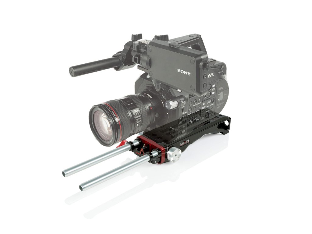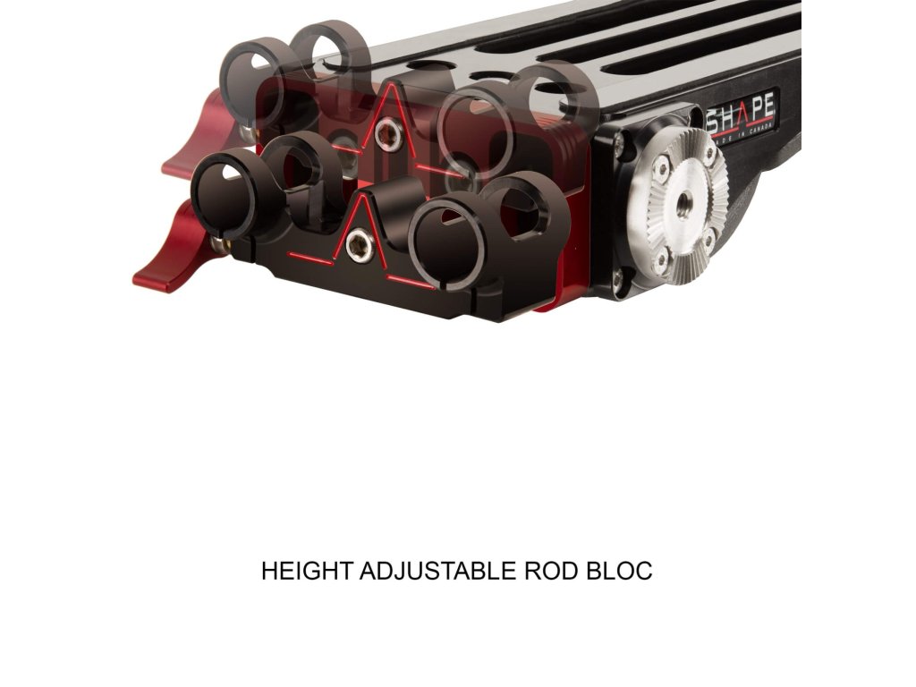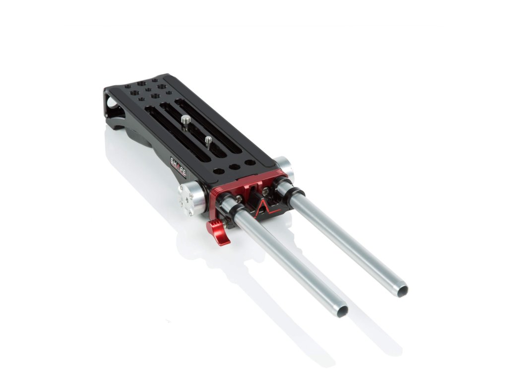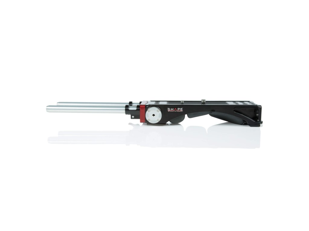 Căptușeala de umăr este prinsă cu fermoare tactile. Firele pentru atașarea trepiedului sunt situate sub suport de umăr. În partea din față este inclusă o pereche de tije de 15 mm și 8 inchi. Pentru a atașa cutia mată și alte accesorii, adaptorul tijei poate fi reglat vertical prin îndepărtarea șurubului care îl ține pe loc. Această placă de bază acceptă și adaptoarele opționale SHAPE 15mm Studio și 19mm Studio în locul celui furnizat. Placa de bază include trei sloturi pentru montarea camerei, toate suportând șuruburi de 1/4”-20 și 3/8”-16. Găurile decentrate vă permit să montați un offset al camerei dacă utilizați un adaptor de studio de 15 mm. Filetele de montare multiple de 1/4”-20 și 3/8”-16 sunt situate în spatele celor trei fante pentru atașarea brațelor articulate și a altor accesorii. Pachetul include două șuruburi 1/4”-20 și două 3/8”-16 pentru fixarea camerei.