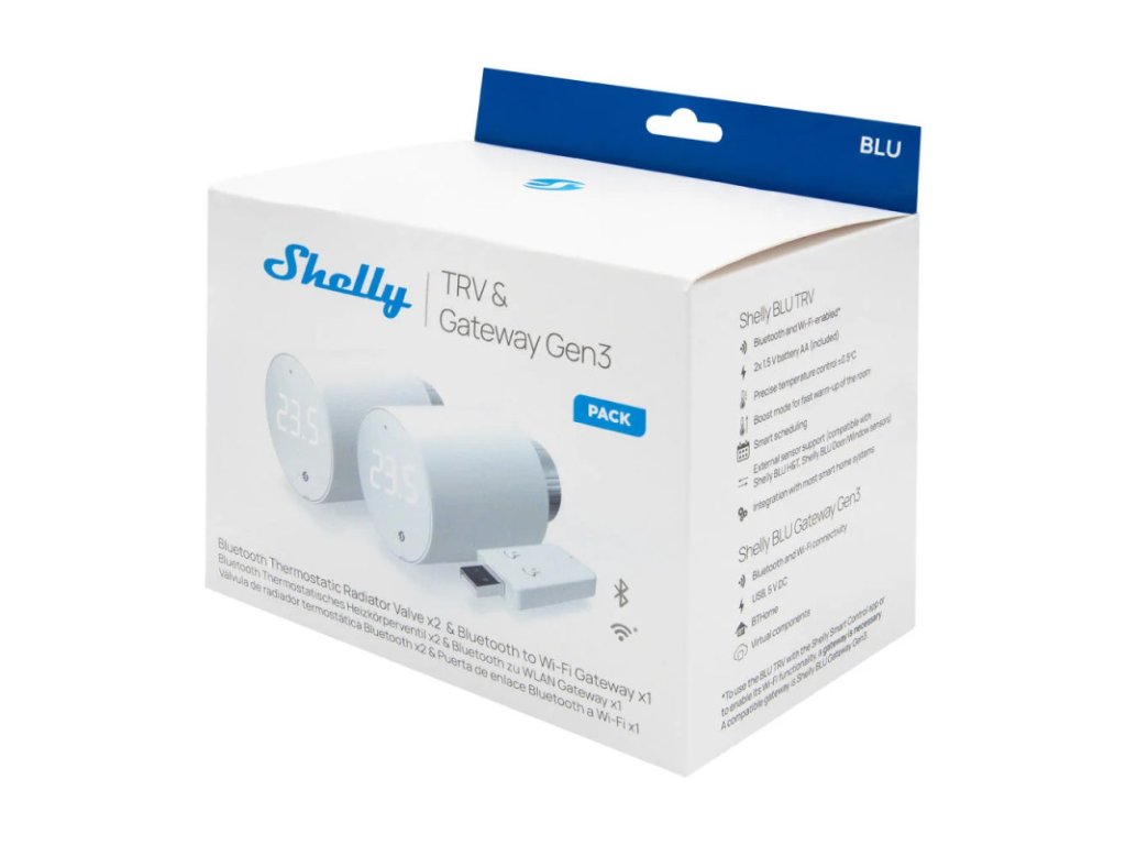 Shelly BLU TRV 2-Pack + BLU Gateway Gen3 - 2 robinete termostatice pentru radiator cu 1 gateway (Bluetooth)