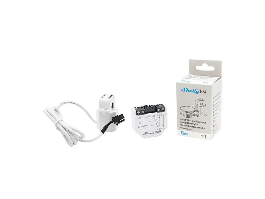 Shelly EM Gen3 + 1x clește 50A - măsurare consum cu până la 2 clești, ieșire 1x2A (WiFi, Bluetooth)