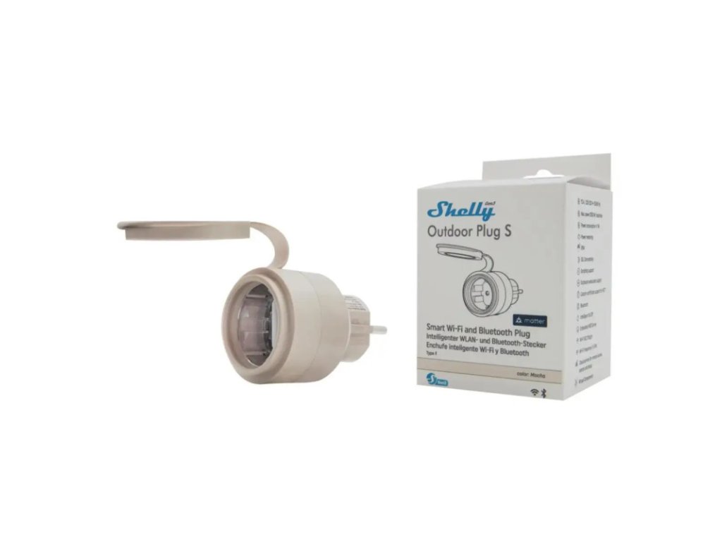 Shelly Outdoor Plug S Gen3 Mocha - priză exterioară cu măsurare a consumului (WiFi, Bluetooth)