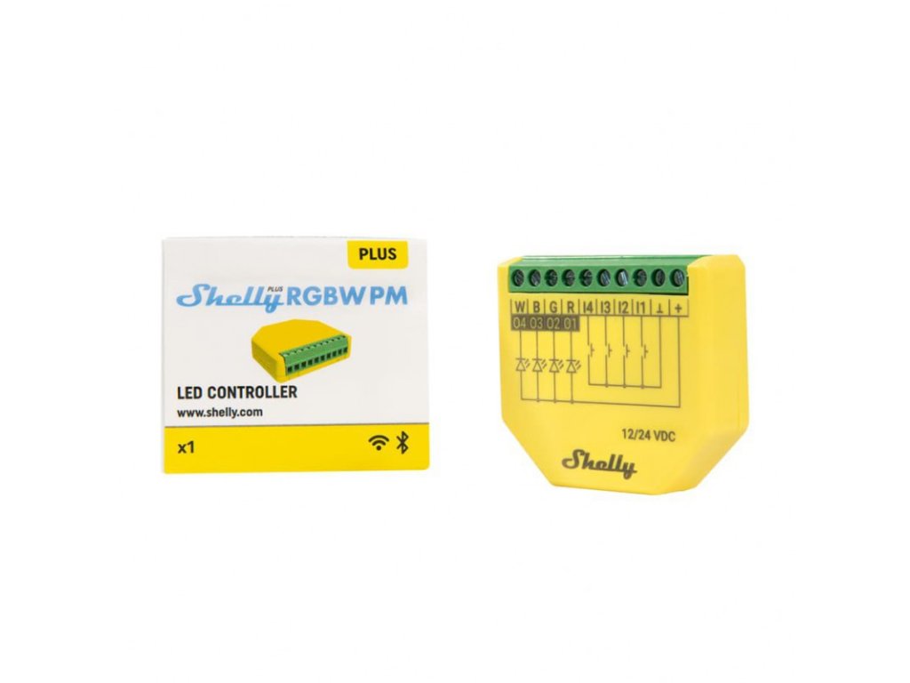 Shelly Plus RGBW PM - Modul de control pentru benzi LED 12/24V (WiFi)