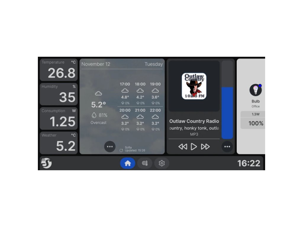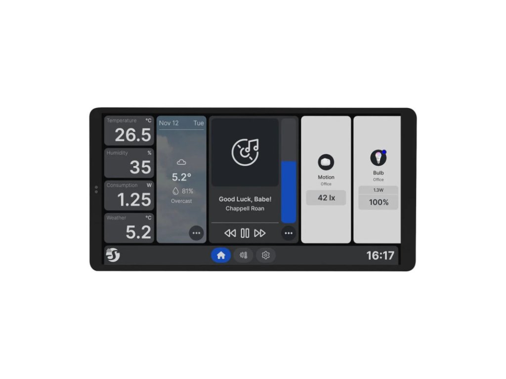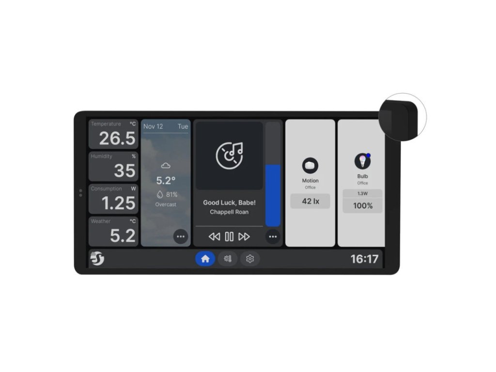 Shelly Wall Display X2 + BLU H&T Negru - panou tactil de perete cu releu (WiFi, Bluetooth), Negru