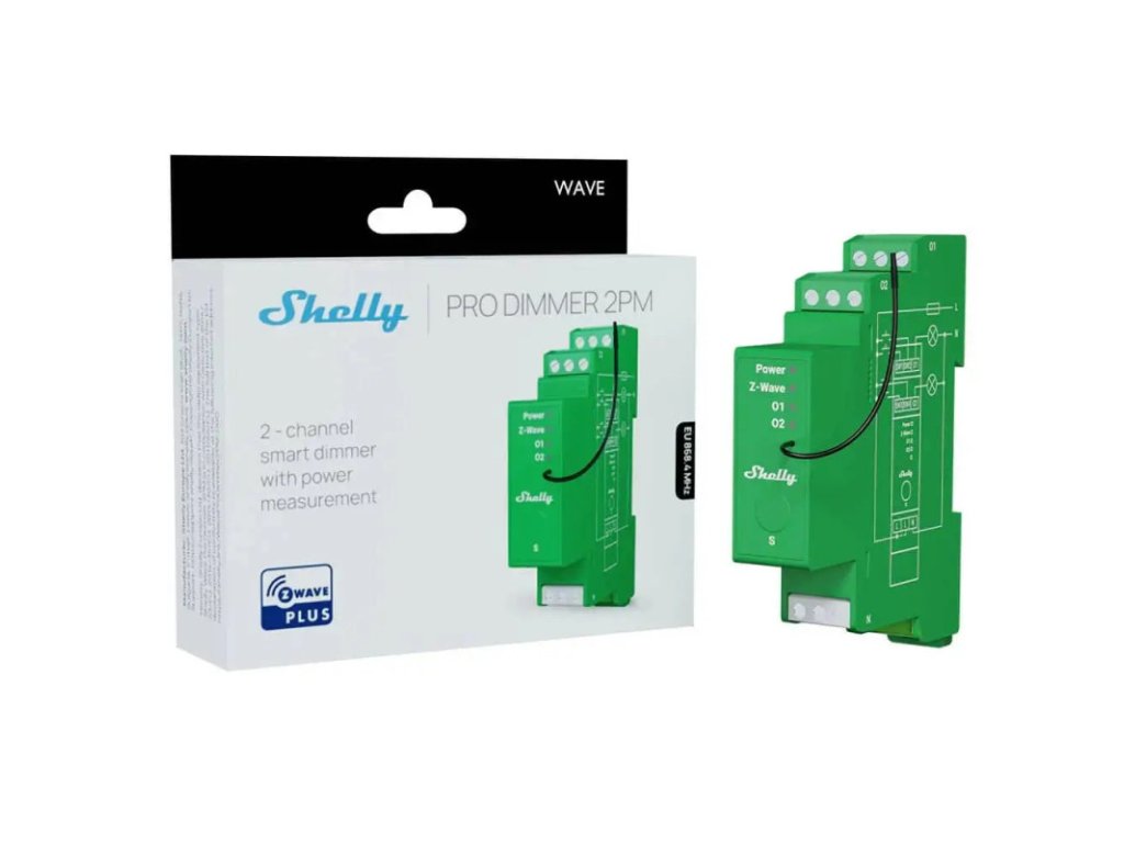 Shelly Wave Pro Dimmer 2PM - modul de reglare a intensității luminoase cu 2 ieșiri (Z-Wave)
