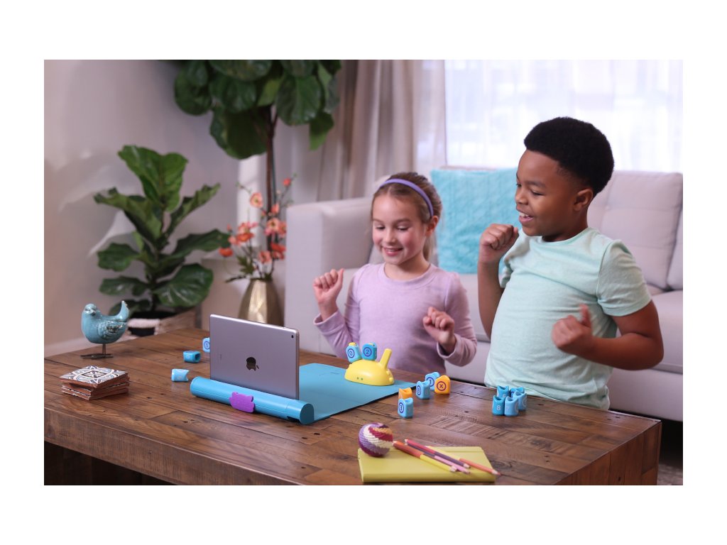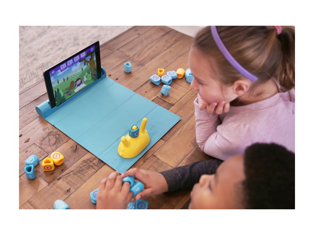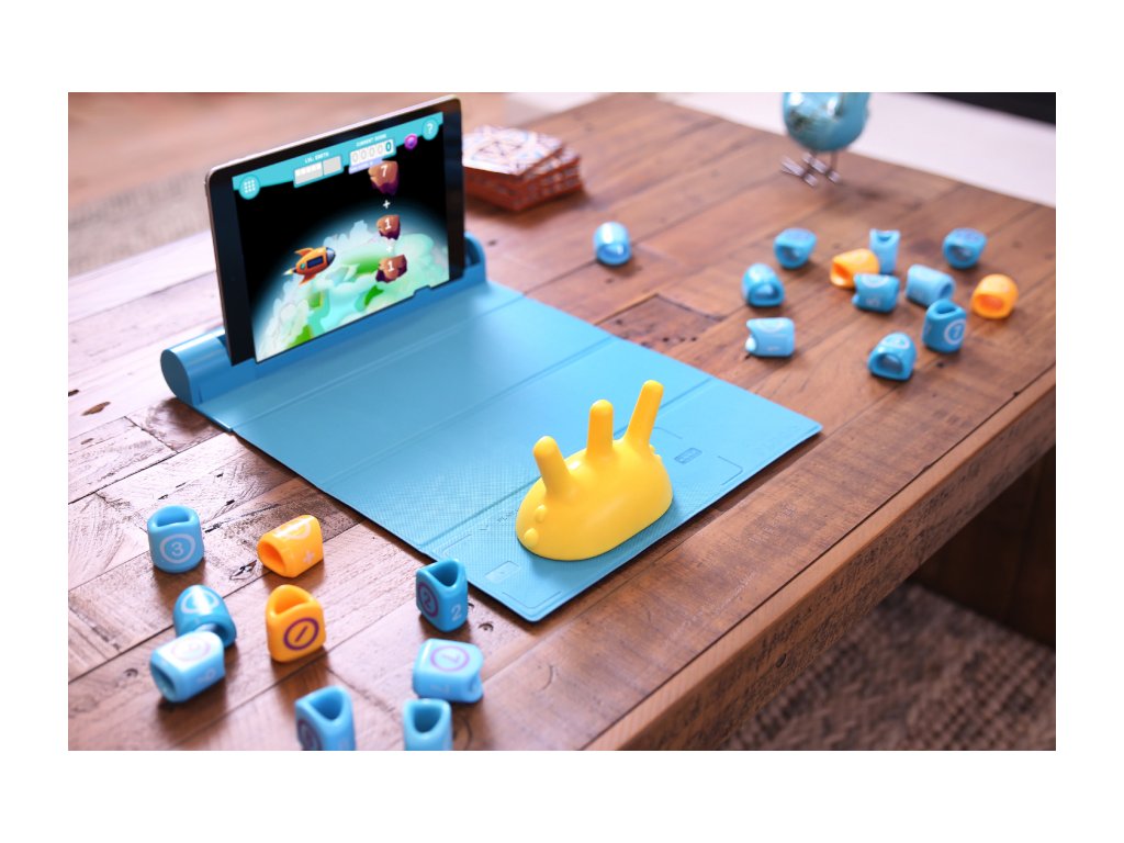 Totul se întâmplăpe un suport magnetic, in care puteti atasa tableta (vine si cu husa). După lansarea aplicațieicopiii controlează jocurile de pe ecran prin plasarea pieselor pe stand. Ei numără exemplele în funcție de dificultatea aleasă și fiecare răspuns corect îi mută mai departe în poveste.Mediul interactiv al aplicației includeelemente motivaționale audiovizuale, care îi ajută pe copii în mod fluent și eficient în rezolvarea sarcinilor.Tehnologie de realitate augmentată (AR – Augmented Reality), pe lângă feedback-ul constant, aduce un alt mare avantaj – în timpul joculuinici butoane, baterii sau cabluri nu iti stau in cale iar copiii se pot concentra pe aprofundarea abilităților lor STEM.